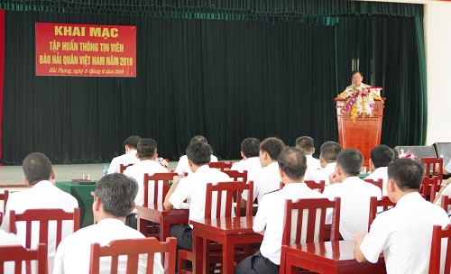 Đồng chí Phó Chủ nhiệm Chính trị Hải quân yêu cầu các Thông tin viên cần tích cực nghiên cứu, trao đổi, học tập kinh nghiệm từ các đồng chí giảng viên và đồng nghiệp để đạt được mục đích, yêu cầu của tập huấn lần này.