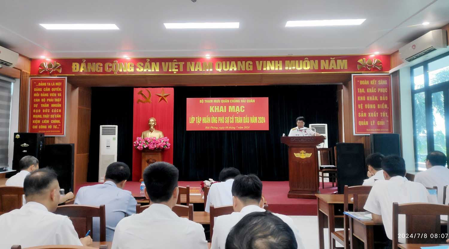 Sáng 8/7, tại Hải đoàn 128 (Hải Phòng), Bộ Tham mưu Hải quân tổ chức Hội nghị tập huấn ứng phó sự cố tràn dầu (ƯPSCTD). Đại tá Vũ Đình Hiển, Phó Tham mưu trưởng Hải quân dự và chỉ đạo.