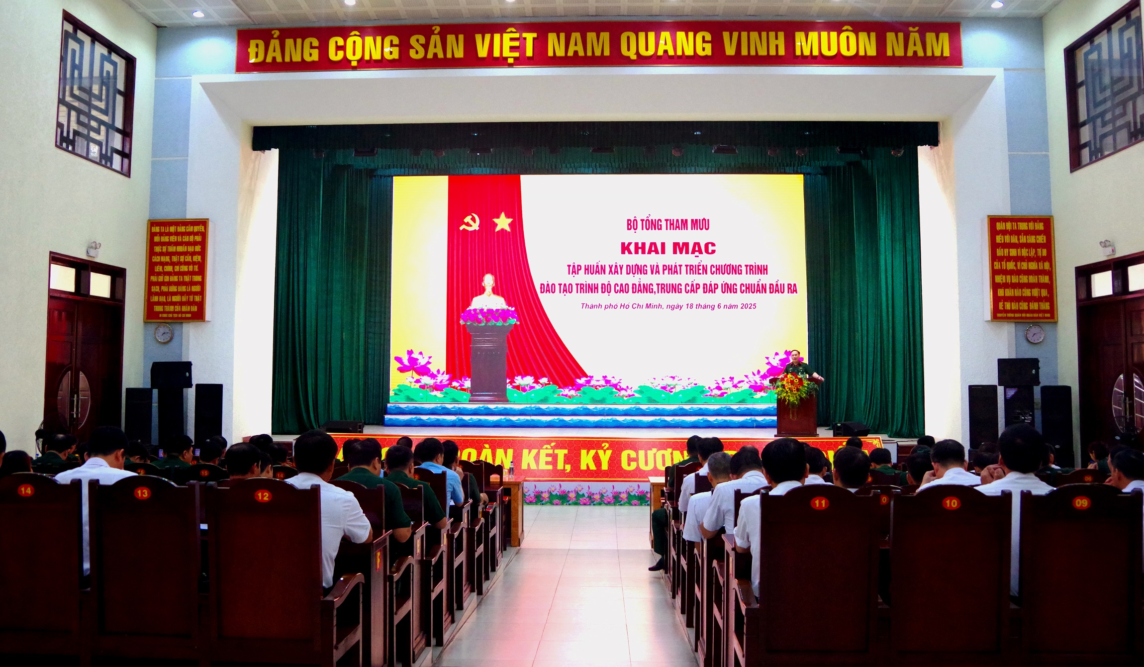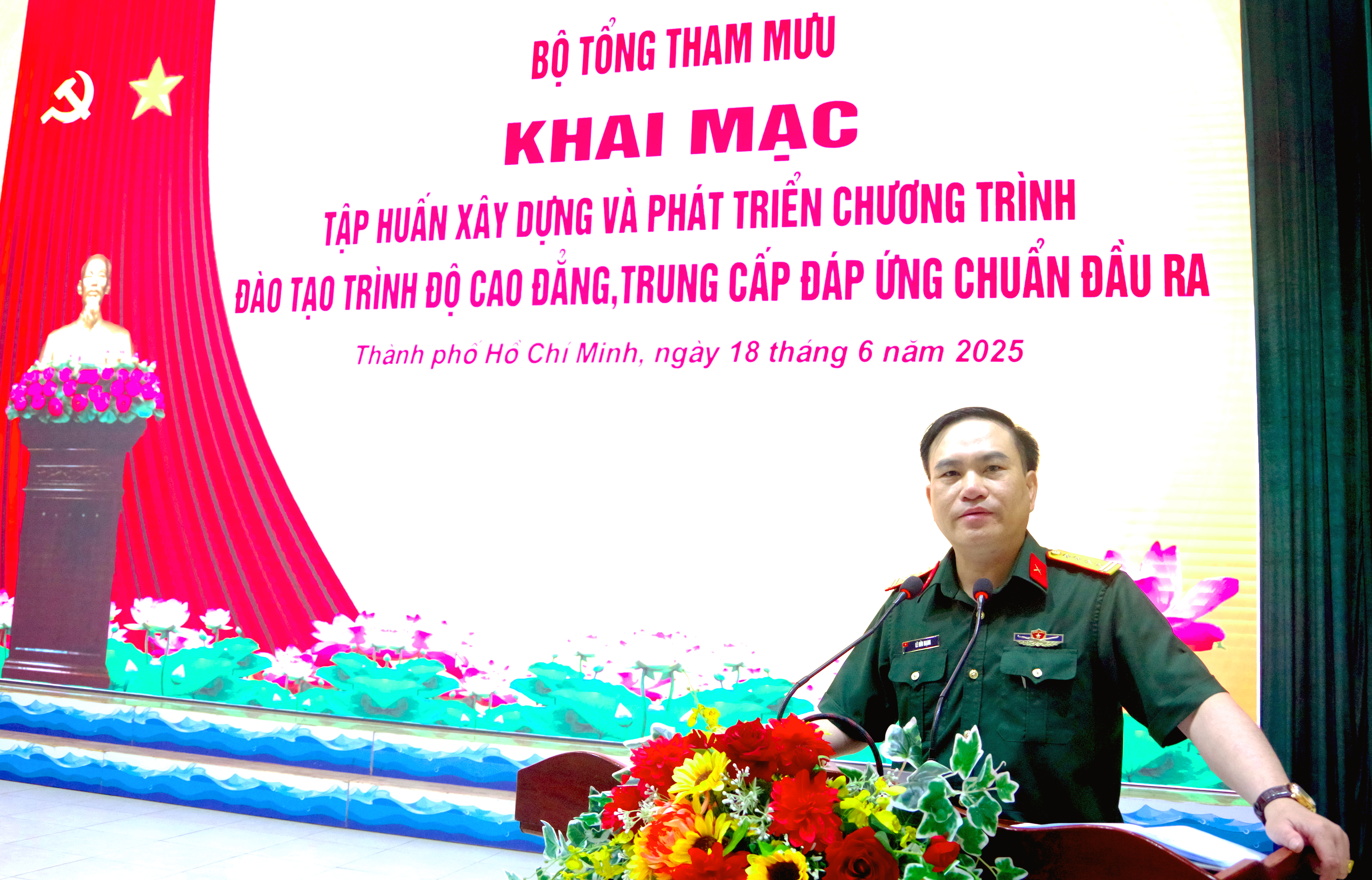 Sáng 18/6, tại Trường Cao đẳng Kỹ thuật Hải quân (TP Hồ Chí Minh), Cục Quân huấn - Nhà trường, Bộ Tổng Tham mưu tổ chức tập huấn về xây dựng và phát triển chương trình đào tạo trình độ cao đẳng, trung cấp đáp ứng chuẩn đầu ra cho các trường cao đẳng, trung cấp toàn quân.