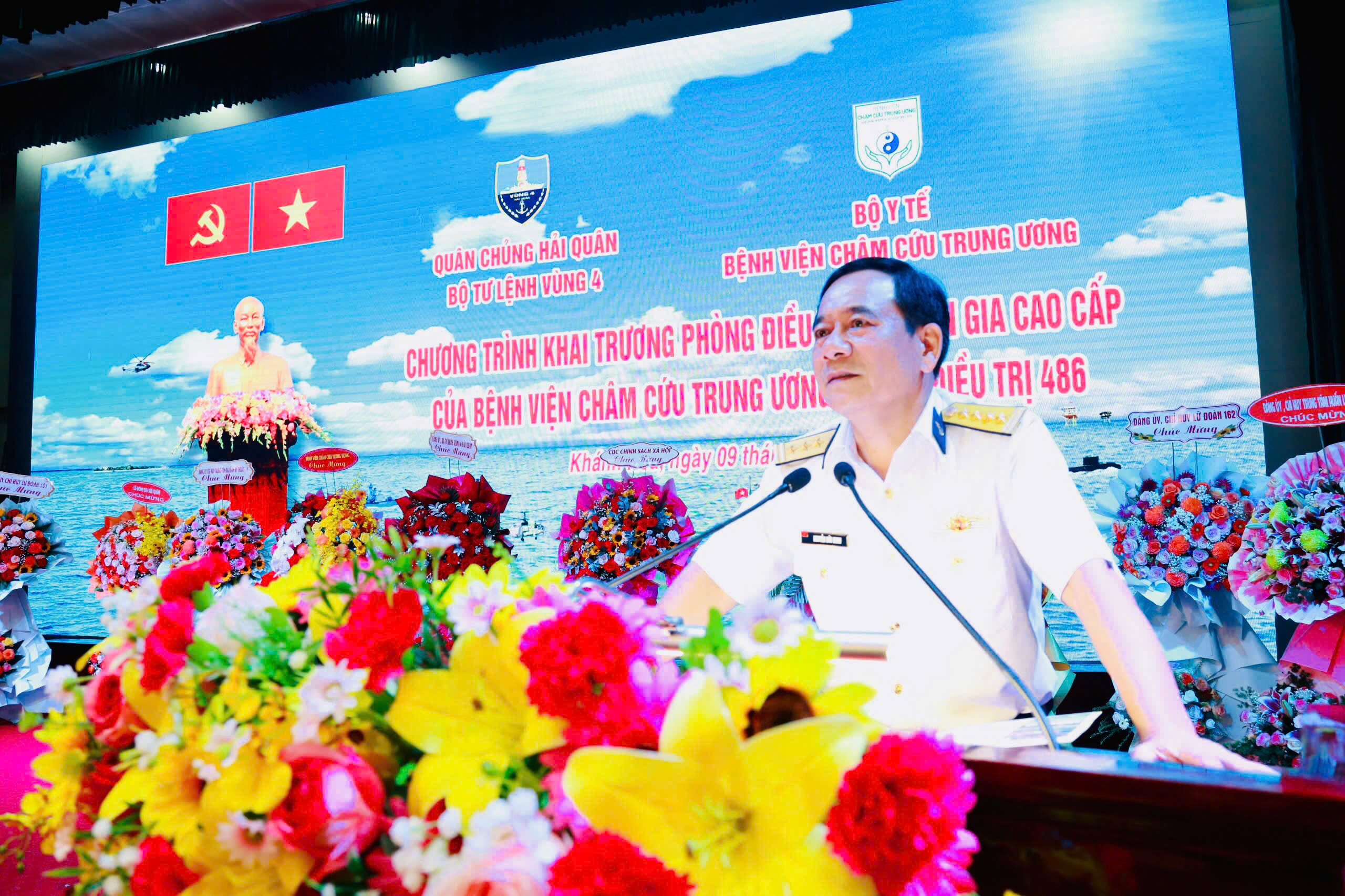 Chiều 9/5, tại TP. Cam Ranh, tỉnh Khánh Hoà, Bộ Tư lệnh Vùng 4 Hải quân tổ chức khai trương phòng điều trị chuyên gia cao cấp của Bệnh viện Châm cứu Trung ương tại Đội điều trị 486. Đại tá Nguyễn Hữu Minh, Phó Chính ủy Vùng 4 dự và chỉ đạo.