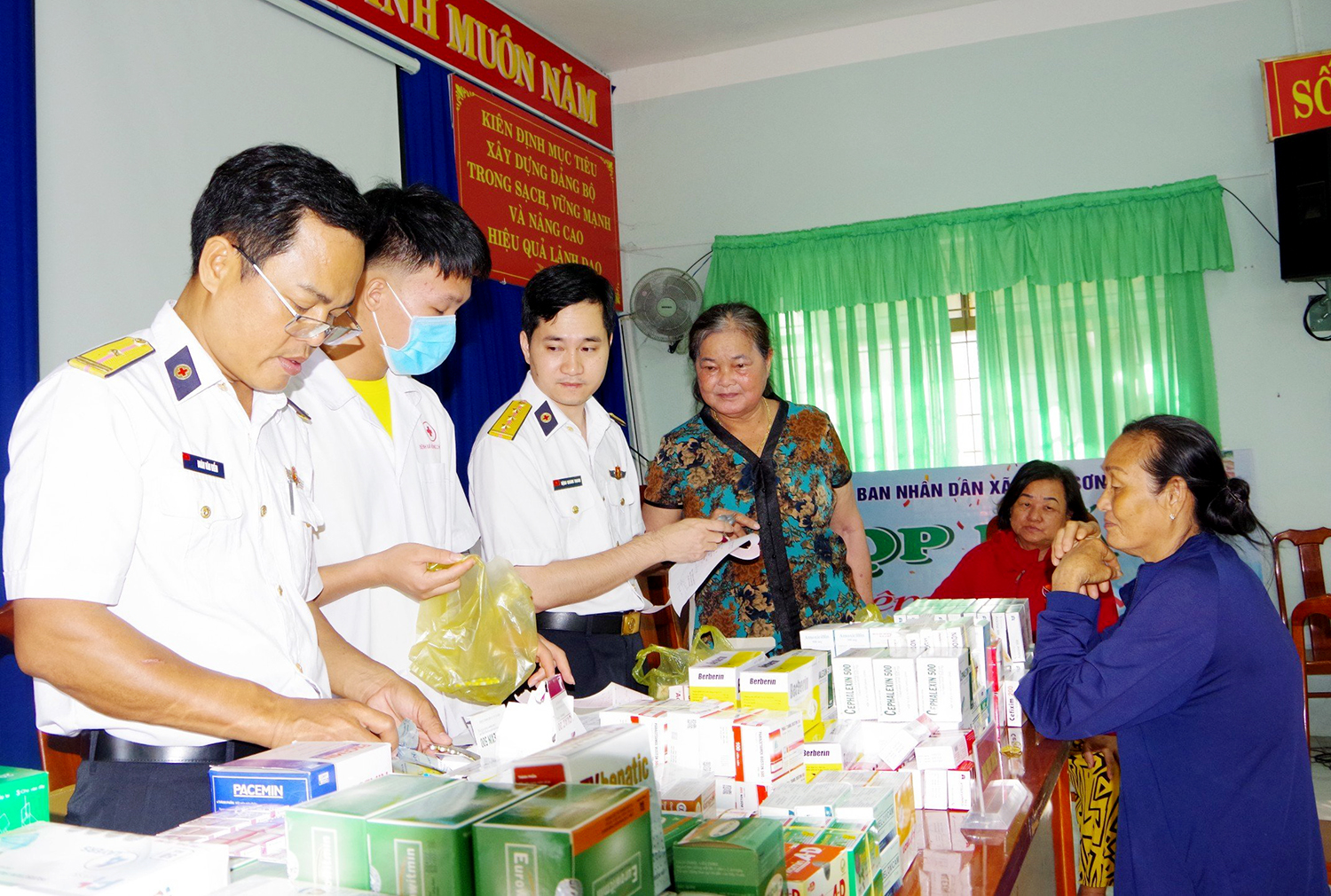 Các cơ quan, đơn vị của Cục Hậu cần Hải quân vừa phối hợp với Phòng Hậu cần-Kỹ thuật Vùng 2 và UBND xã Long Sơn tổ chức chương trình khám bệnh, tư vấn sức khỏe và cấp thuốc miễn phí cho người có công, gia đình chính sách, hộ nghèo và ngư dân trên địa bàn xã.
