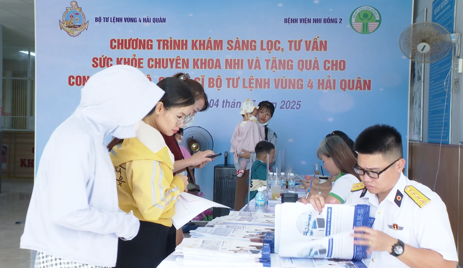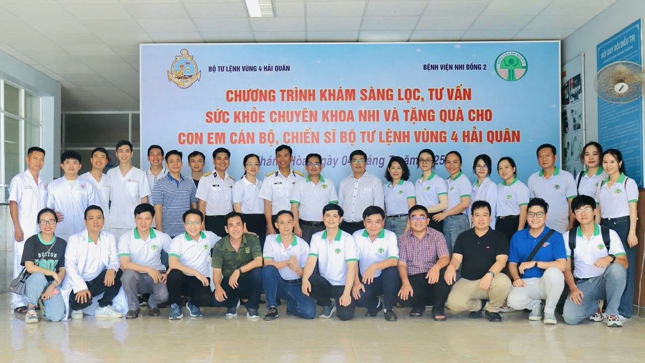 Ngày 4 và 5/7, tại tỉnh Khánh Hòa, quân y Vùng 4 Hải quân đã phối hợp với Bệnh viện Nhi đồng 2 (TP. Hồ Chí Minh) tổ chức chương trình khám bệnh, tư vấn sức khỏe và xét nghiệm sàng lọc cho 1.000 cháu là con của cán bộ, nhân viên đang công tác trong Cụm lực lượng 4 Hải quân.