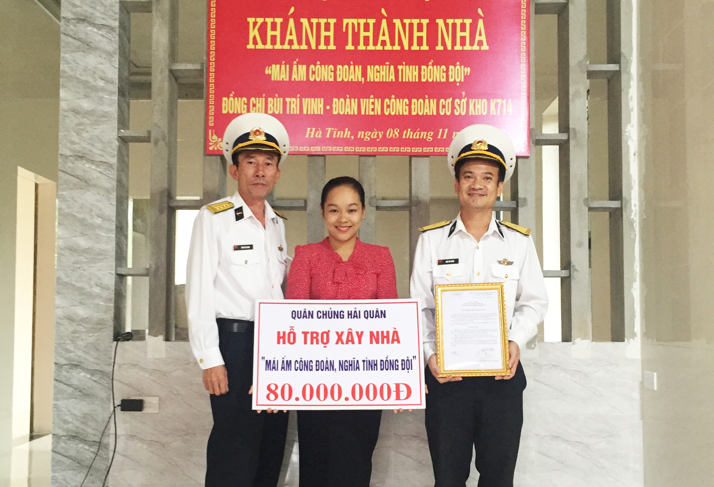 Sáng 8-11, tại thị trấn Đức Thọ, huyện Đức Thọ, tỉnh Hà Tĩnh, Cục Chính trị Hải quân phối hợp với Bộ Tư lệnh Vùng 3 Hải quân và chính quyền địa phương tổ chức khánh thành, bàn giao nhà “Mái ấm công đoàn-Nghĩa tình đồng đội” cho gia đình Thiếu tá Bùi Trí Vinh, đoàn viên Công đoàn cơ sở Kho K714, Trung tâm Bảo đảm kỹ thuật 354, Vùng 3 Hải quân.