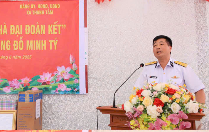 Phát biểu tại buổi lễ, Thượng tá Đinh Ngọc Quang nhấn mạnh: Đây là một trong 5 công trình nhà tình nghĩa, nhà đại đoàn kết mà đơn vị triển khai trong năm 2025. Tuy giá trị vật chất không lớn, nhưng thể hiện sự trân trọng đạo lý “Uống nước nhớ nguồn” và tình cảm của những người lính biển với thế hệ cha anh đi trước.