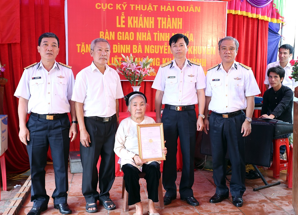 Thủ trưởng Cục Kỹ thuật Hải quân trao Quyết định tặng nhà tình nghĩa cho gia đình bà Nguyễn Thị Khuyên