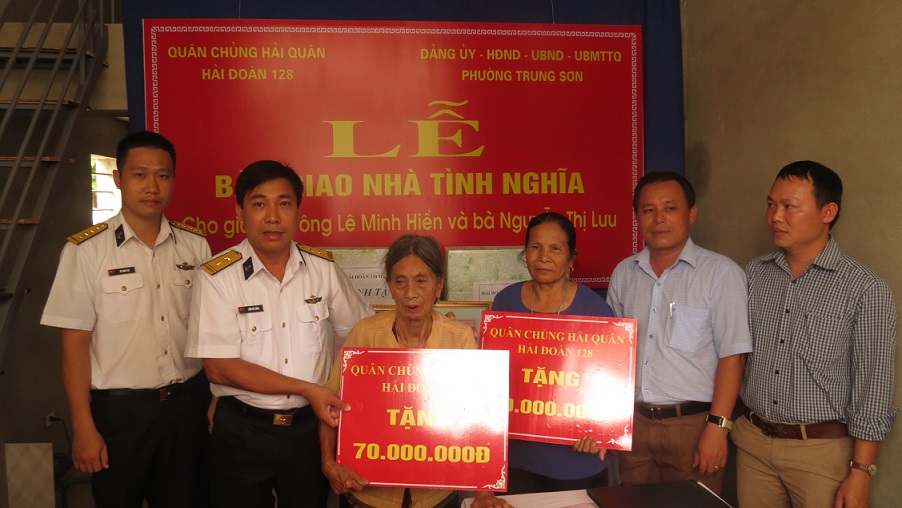 * Trước đó, ngày 18-7, tại phường Trung Sơn, thành phố Sầm Sơn, tỉnh Thanh Hóa, Hải Đoàn 128 Hải quân tổ chức lễ bàn giao 2 nhà tình nghĩa cho 2 gia đình chính sách có hoàn cảnh khó khăn về nhà ở.
