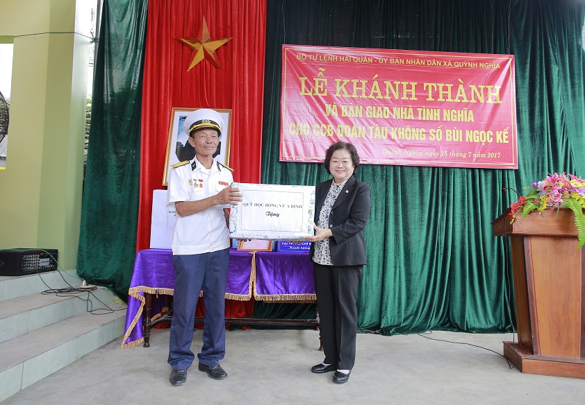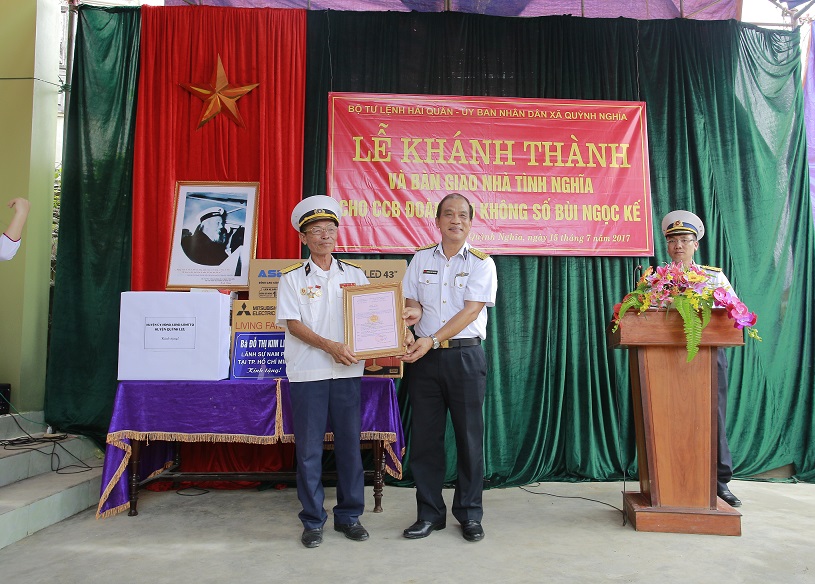 Ngày 15-7, tại xã Quỳnh Nghĩa, huyện Quỳnh Lưu, tỉnh Nghệ An, Quân chủng Hải quân đã tổ chức khánh thành và bàn giao nhà tình nghĩa cho Cựu chiến binh Đoàn tàu Không số Bùi Ngọc Kế. Dự buổi lễ có nguyên Phó Chủ tịch nước Trương Mỹ Hoa-Chủ tịch Quỹ học bổng “Vừ A Dính”, Chủ nhiệm Câu lạc bộ “Vì Hoàng Sa, Trường Sa thân yêu”.