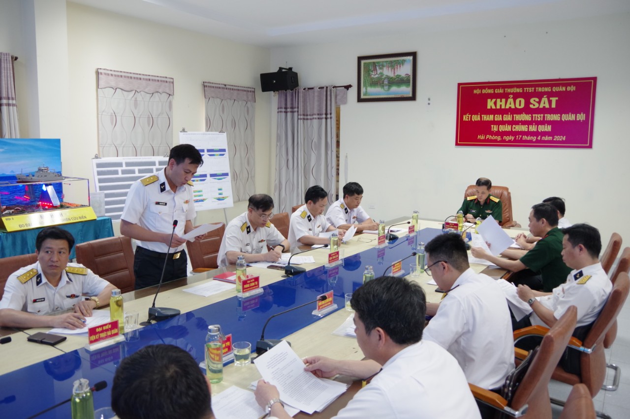 Chiều 17/4, tại Đoàn Đo đạc biên vẽ hải đồ và nghiên cứu biển (TP. Hải Phòng), Hội đồng Giải thưởng Tuổi trẻ sáng tạo (TTST) trong Quân đội đã khảo sát kết quả tham gia Giải thưởng TTST trong Quân đội của Quân chủng Hải quân.
