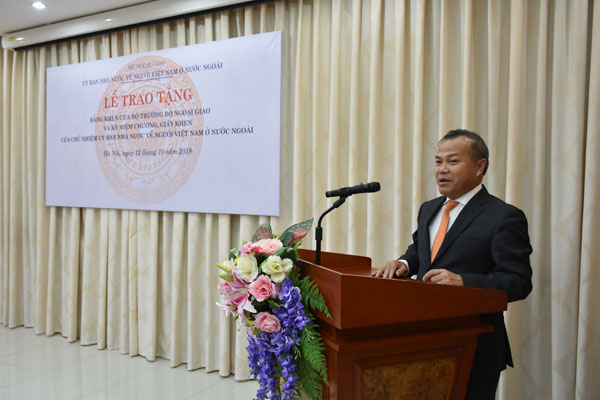 Tại buổi lễ, 40 tập thể và cá nhân có thành tích xuất sắc trong công tác về người Việt Nam ở nước ngoài năm 2017-2018 đã được nhận Bằng khen của Bộ Ngoại giao, Giấy khen và Kỷ niệm chương của Ủy ban Nhà nước về người Việt Nam ở nước ngoài.