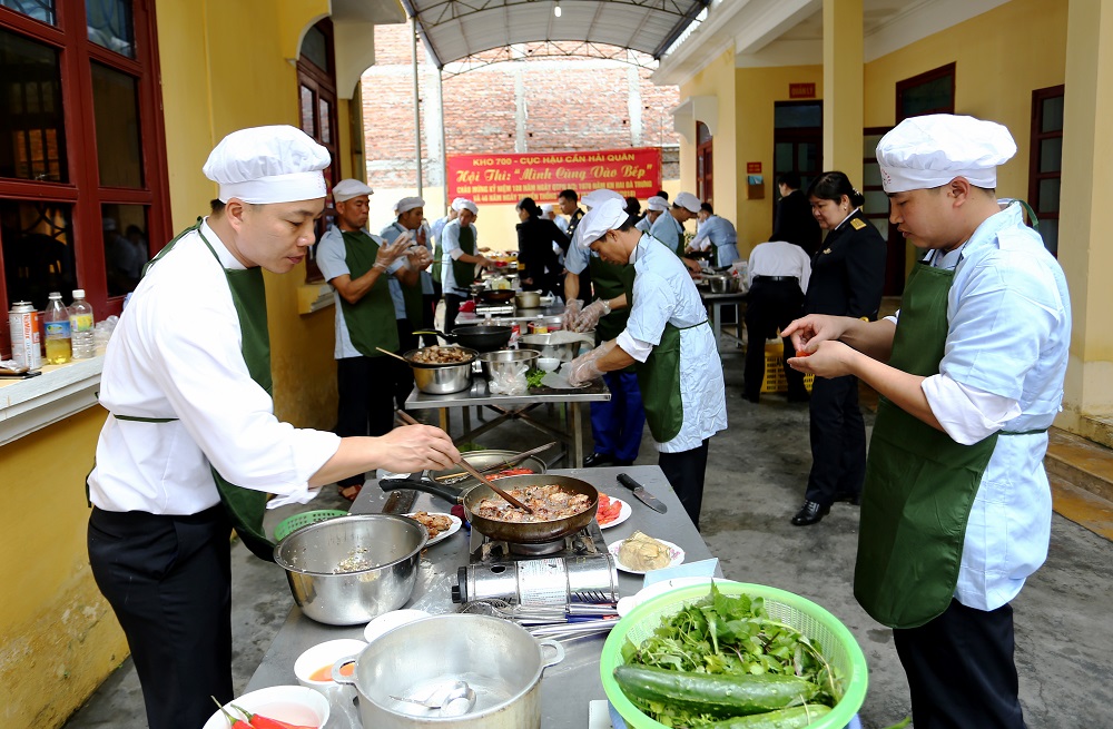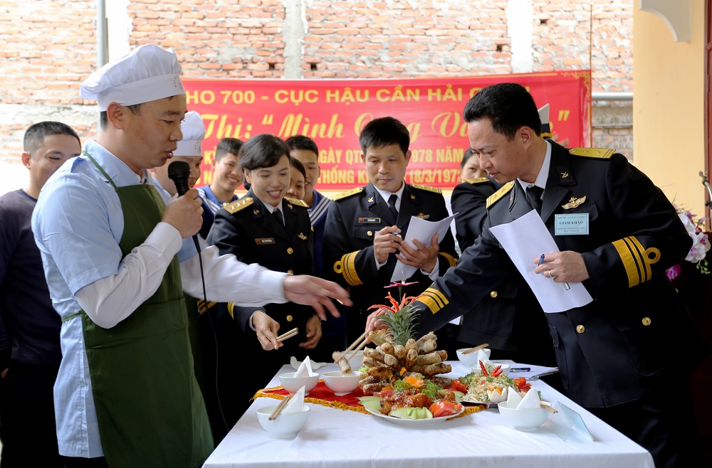 Cũng trong buổi sáng cùng ngày, Kho 700 đã tổ chức Hội thi “Mình cùng vào bếp”. Đây là cuộc thi dành riêng cho các nam quân nhân thể hiện tài nấu ăn.