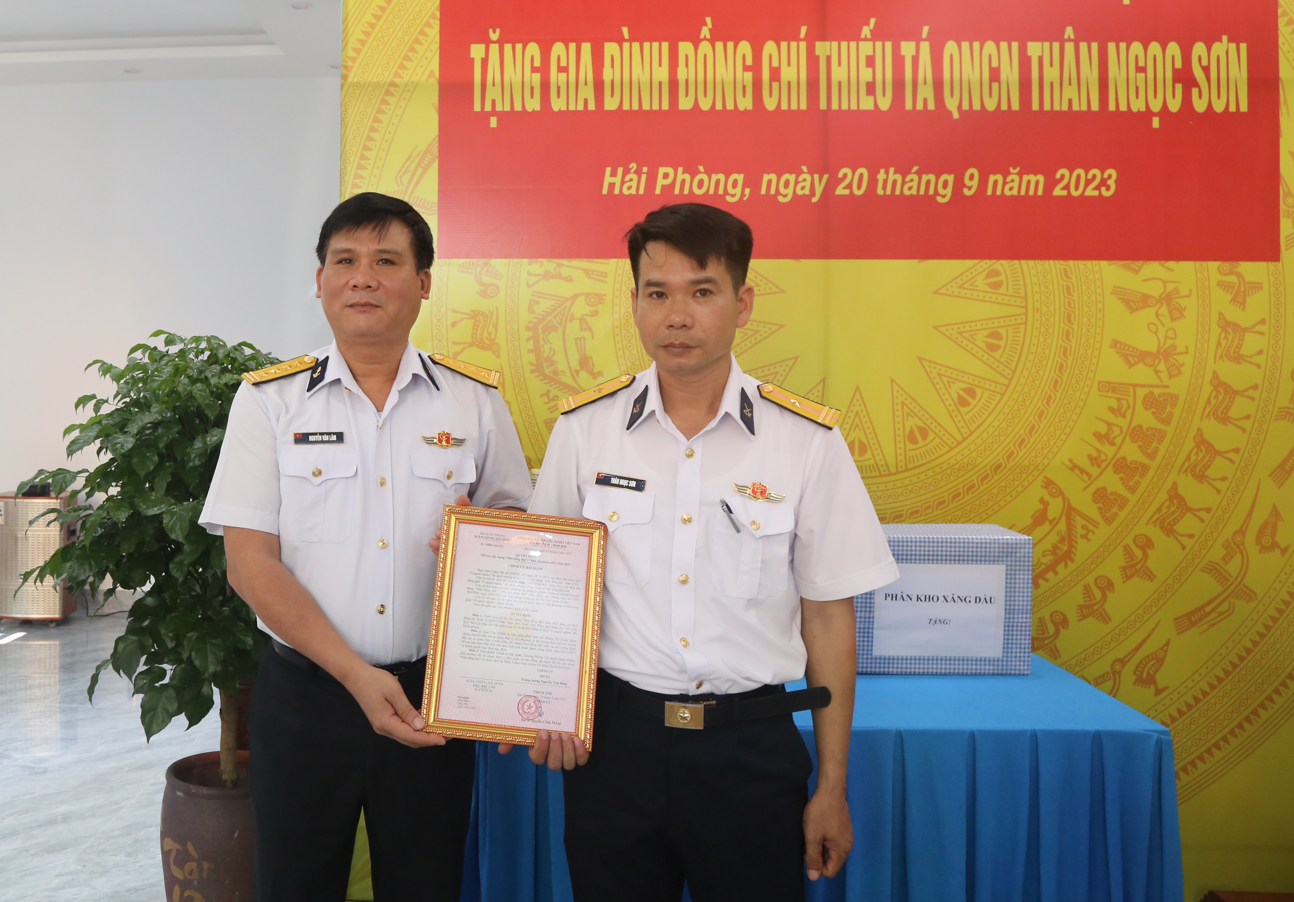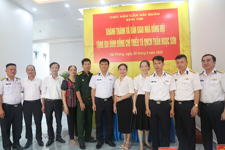 Sáng 20/9, tại huyện An Lão, thành phố Hải Phòng, Kho 700, Cục Hậu cần Hải quân tổ chức khánh thành, bàn giao nhà đồng đội tặng Thiếu tá QNCN Thân Ngọc Sơn, Nhân viên Phân kho xăng dầu Tiên Hội thuộc Kho 700.