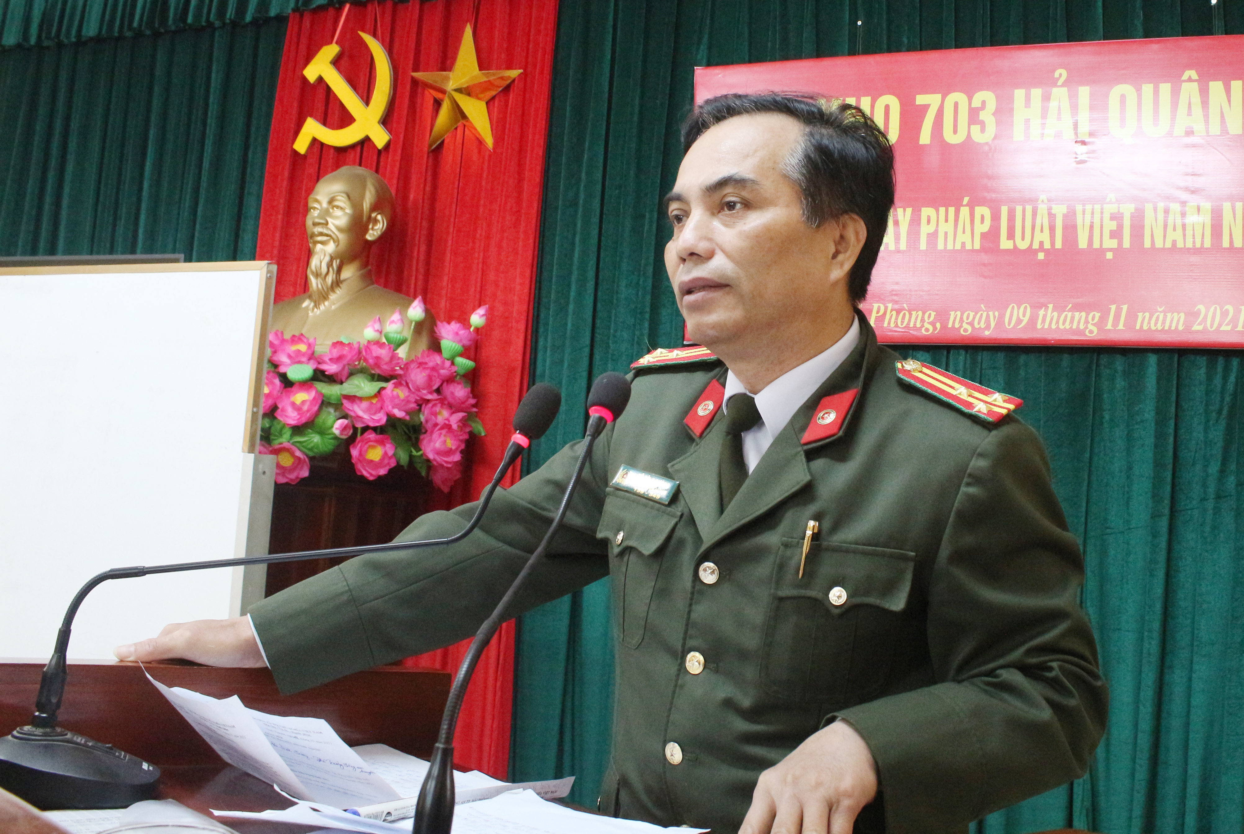 Nhân dịp hưởng ứng Ngày pháp luật Việt Nam 9/11, tại Hải Phòng, Kho 703, Vùng 1 Hải quân tổ chức Hội nghị thông tin chuyên đề về pháp luật tới toàn thể cán bộ, chiến sĩ. Đại tá Lê Anh Tài, Phó Chủ nhiệm Chính trị Vùng tới dự.