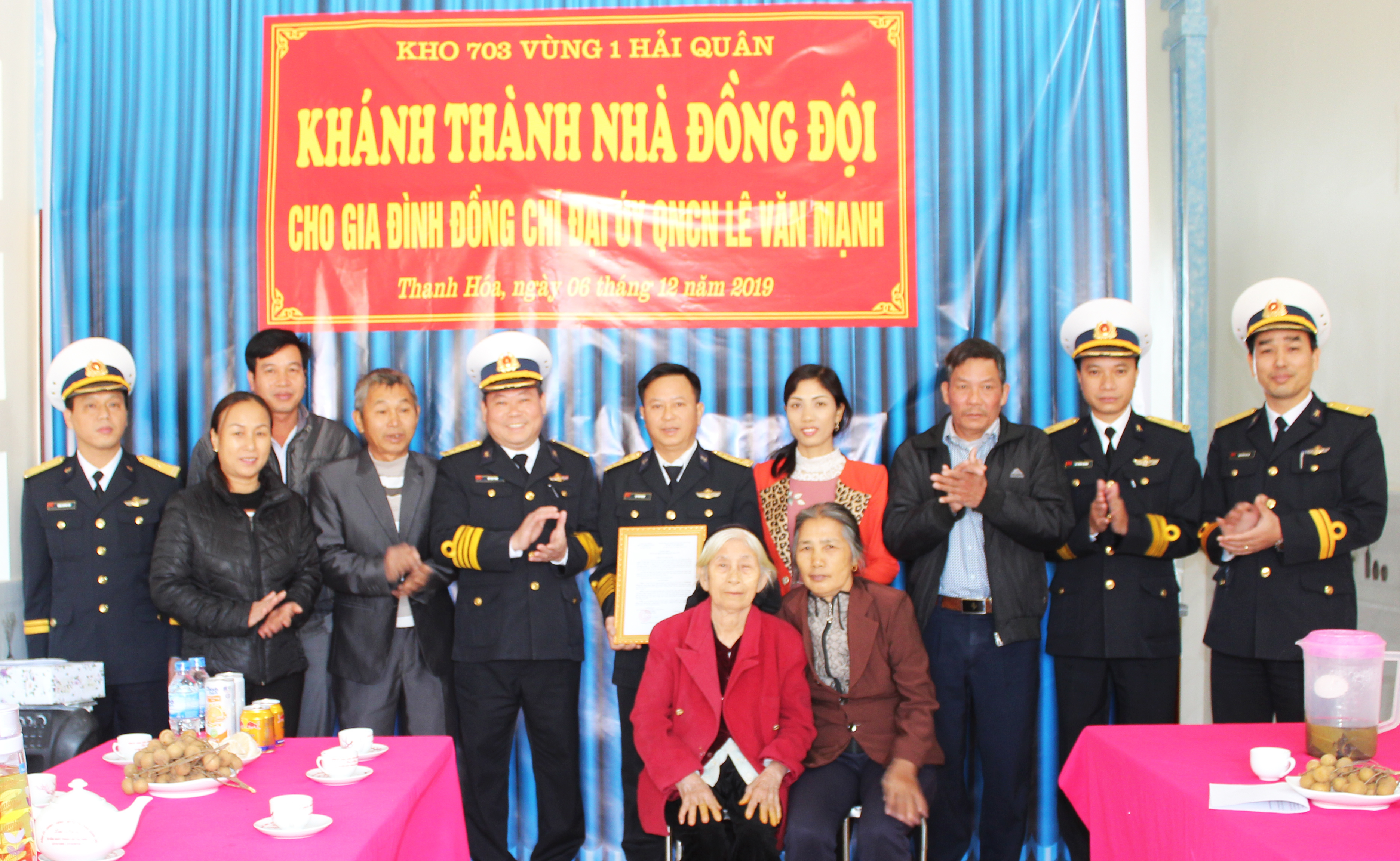 Sáng 6-12, tại thôn Phù Hưng, xã Yên Thái, huyện Yên Định, tỉnh Thanh Hóa, Kho 703, Vùng 1 Hải quân đã tổ chức khánh thành và bàn giao Nhà đồng đội cho gia đình Đại úy QNCN Lê Văn Mạnh, nhân viên Đội vệ binh-bảo vệ, Kho 703, Vùng 1 Hải quân.