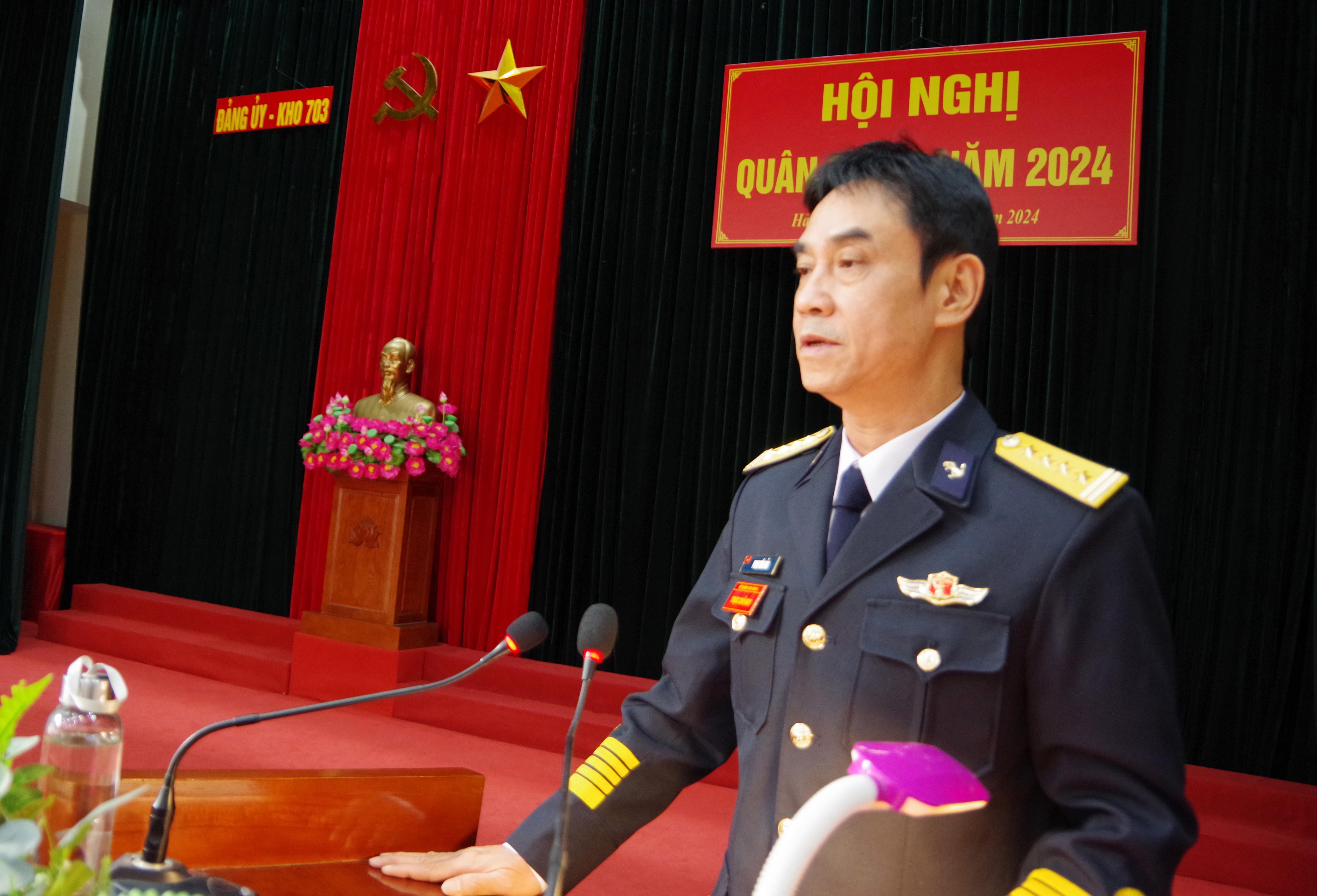 Phát biểu tại hội nghị, Đại tá Phan Tiến Bảo ghi nhận, biểu dương Kho 703 đã thực hiện tốt nhiệm vụ quân sự - quốc phòng năm 2024. Đơn vị duy trì nền nếp công tác kỹ thuật, hoàn thành tốt các nhiệm vụ thường xuyên và đột xuất; không có vụ việc vi phạm kỷ luật, an toàn tuyệt đối.