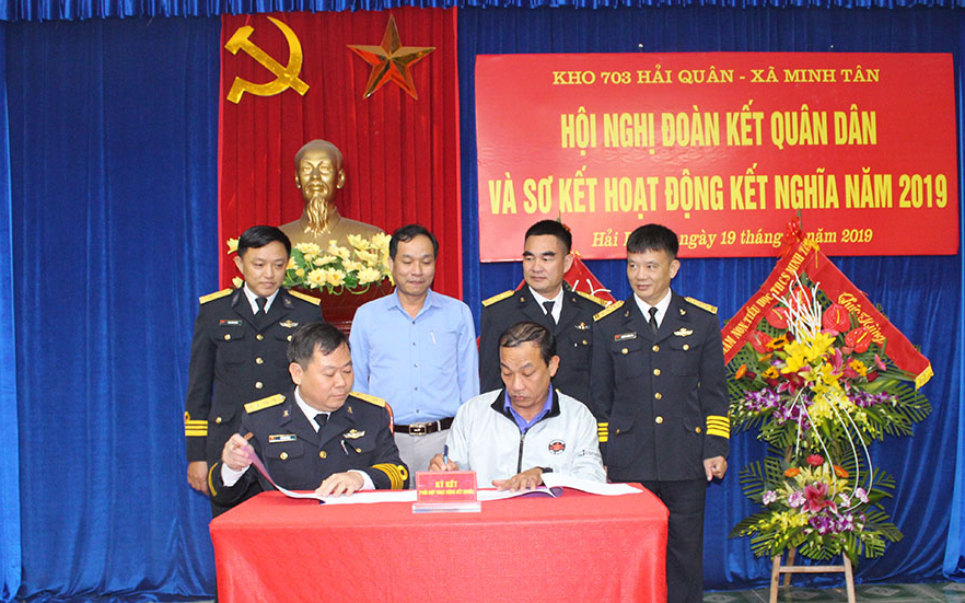 Chiều 19-12, tại huyện Thủy Nguyên, TP. Hải Phòng, Kho 703, Vùng 1 Hải quân và xã Minh Tân, huyện Thủy Nguyên đã phối hợp tổ chức hội nghị đoàn kết quân dân và sơ kết hoạt động kết nghĩa năm 2019.
