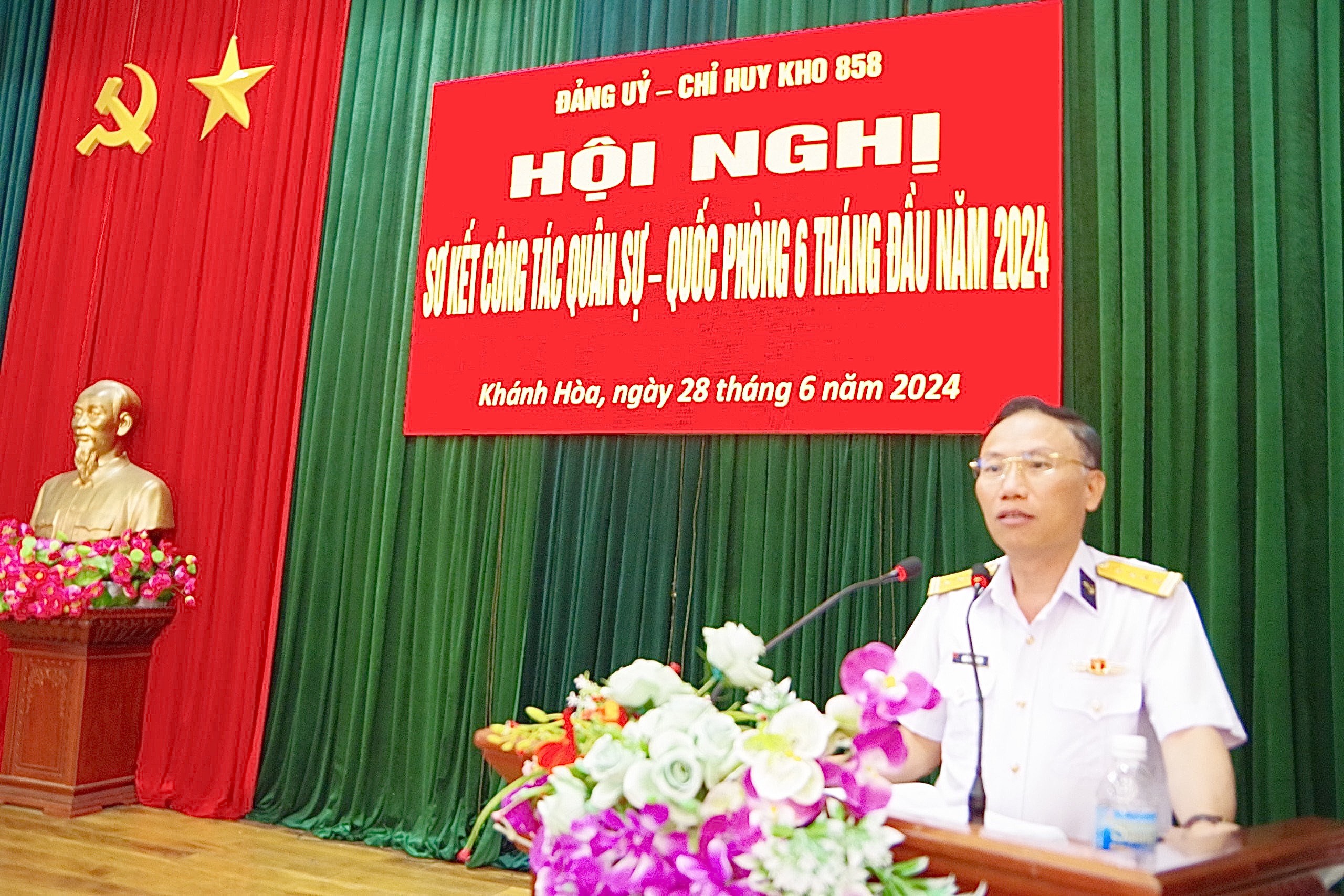 Phát biểu chỉ đạo, Đại tá Ngô Văn Thành yêu cầu: Toàn thể cán bộ, chiến sĩ, QNCN Kho 858 tiếp tục phát huy thành tích đạt được; chủ động khắc phục khó khăn, nêu cao tinh thần đoàn kết, thực hiện thắng lợi nhiệm quân sự - quốc phòng 6 tháng cuối năm; đặc biệt là công tác bảo đảm kỹ thuật đạn dược cho nhiệm vụ diễn tập, huấn luyện của Quân chủng. Kho cũng cần tăng cường công tác bảo đảm an toàn; thường xuyên nắm, động viên, nâng cao đời sống vật chất tinh thần cho cán bộ, chiến sĩ trong đơn vị.