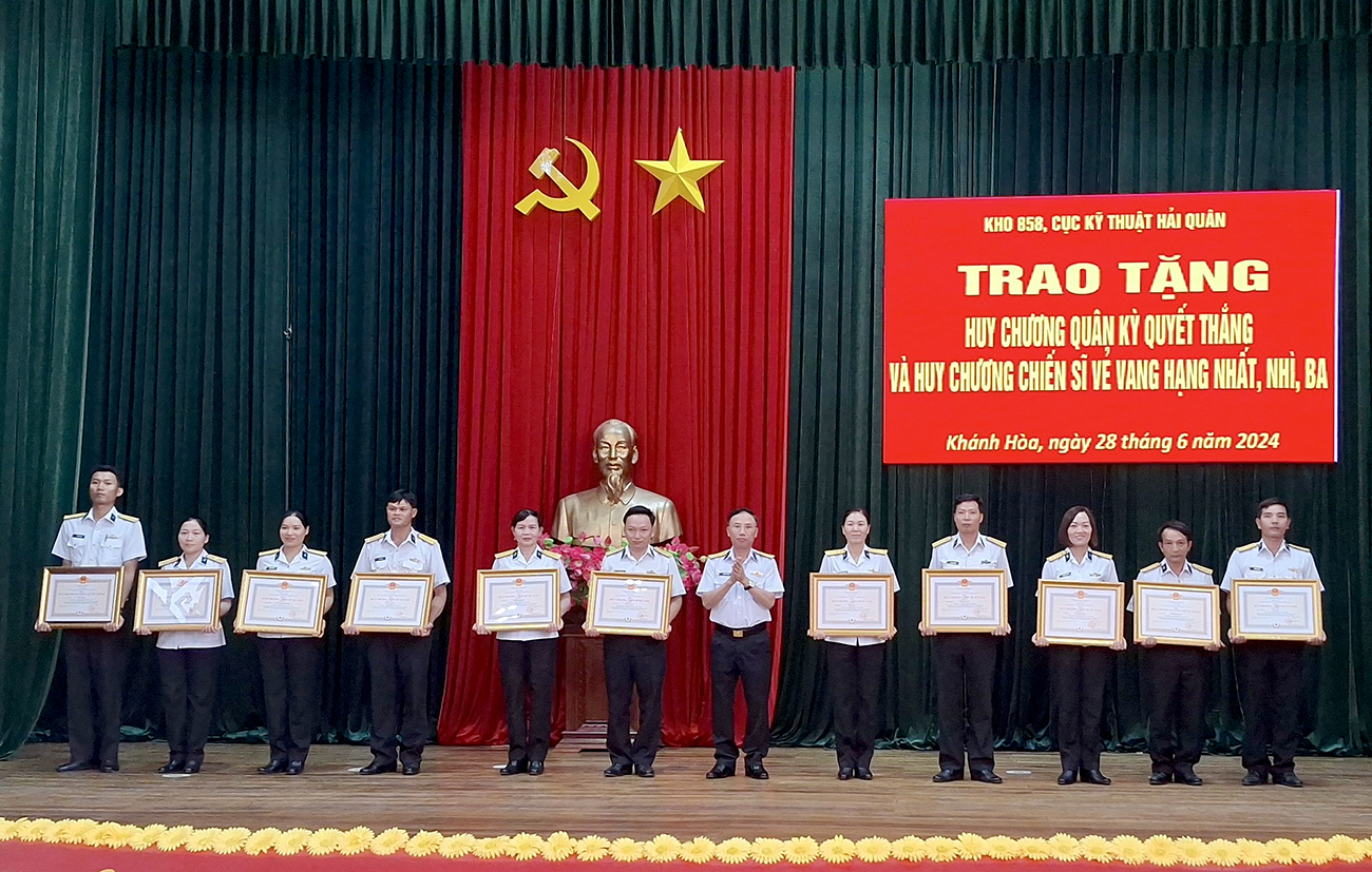 Dịp này, Kho 858 đã tổ chức trao tặng Huy chương Quân kỳ Quyết thắng và Huy chương Chiến sĩ Vẻ vang hạng Nhất, Nhì, Ba cho 20 đồng chí cán bộ, QNCN trong đơn vị.