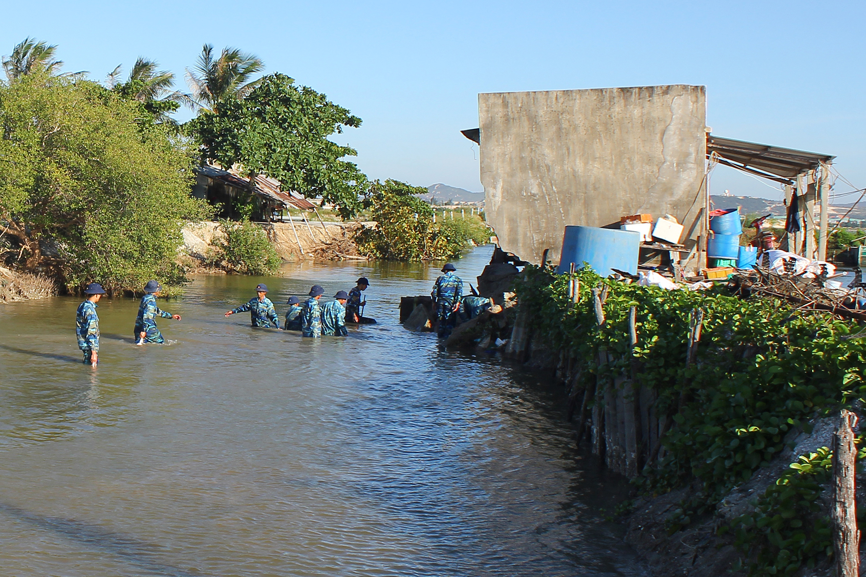 Ngày 21 và 22-11, tại Khánh Hòa, Kho 858, Cục Kỹ thuật Hải quân đã huy động 30 lượt cán bộ, chiến sĩ và phương tiện giúp nhân dân địa phương chống sạt lở, gia cố các đoạn đê xung yếu, phòng chống hậu quả thiên tai.