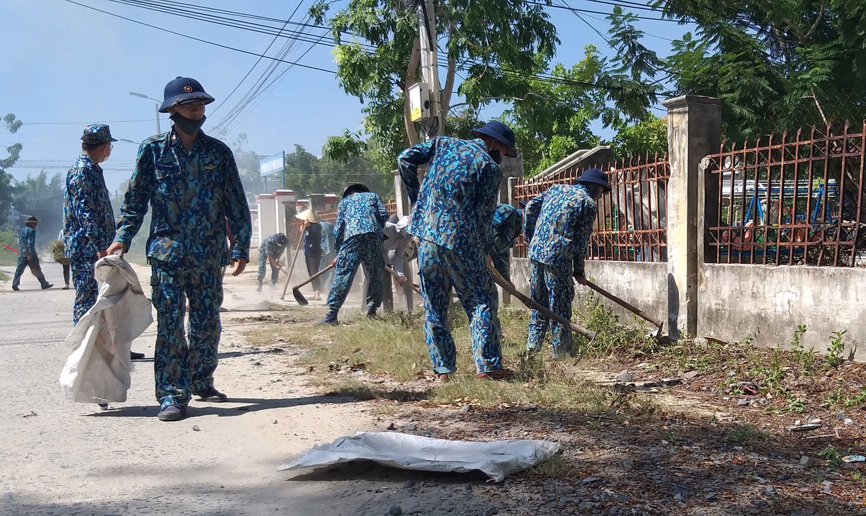 Đoàn viên Kho 858 vệ sinh khu vực phía trước trường học