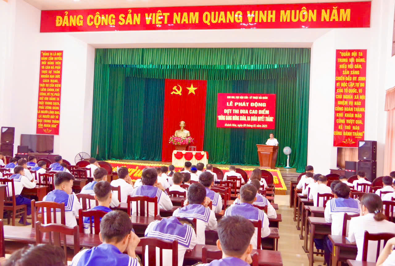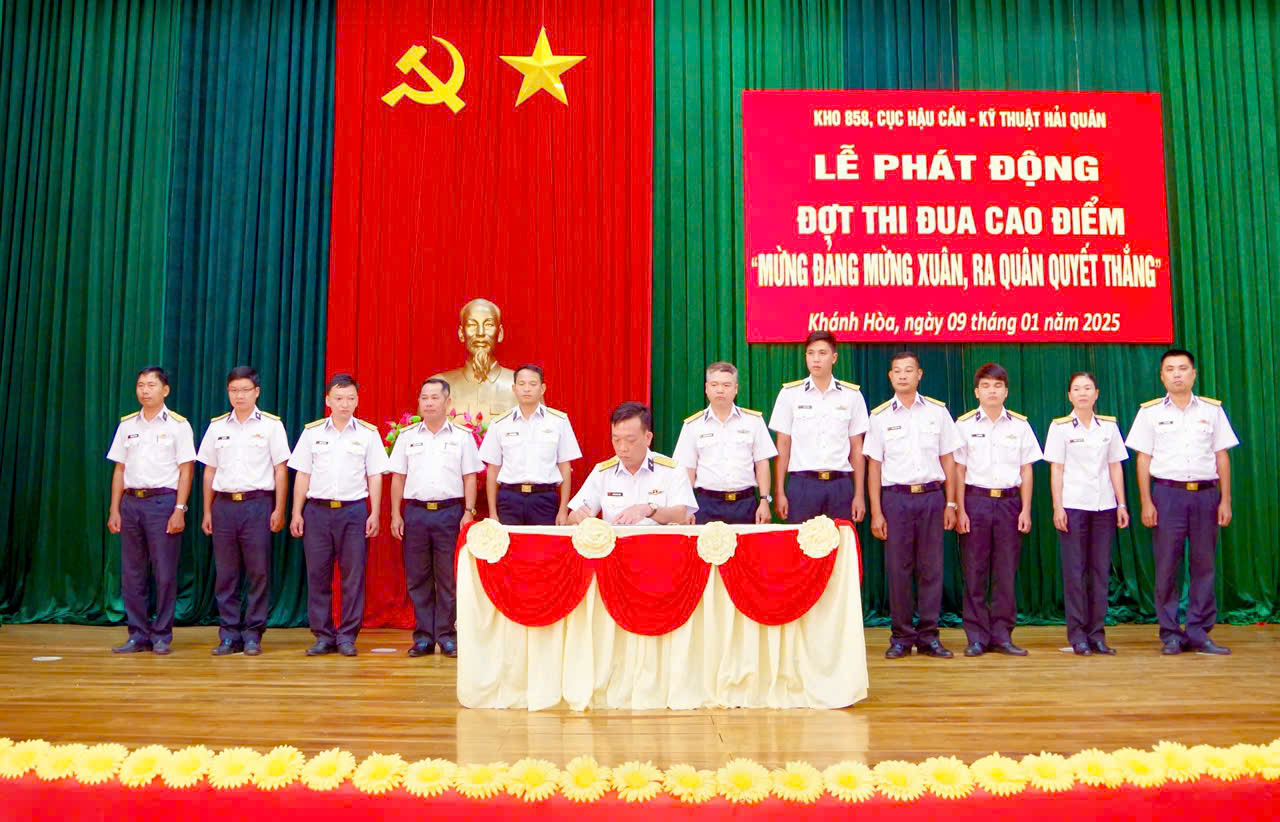 Chiều 9/1, tại TP. Cam Ranh, tỉnh Khánh Hoà, Kho 858, Cục Hậu cần - Kỹ thuật Hải quân tổ chức phát động đợt thi đua cao điểm “Mừng Đảng mừng Xuân, ra quân quyết thắng” chào mừng kỷ niệm 95 năm Ngày thành lập Đảng Cộng sản Việt Nam (3/2/1930 - 3/2/2025), mừng Xuân Ất Tỵ 2025. Đại tá Phạm Quang Hanh, Bí thư Đảng uỷ, Chính trị viên Kho chủ trì.