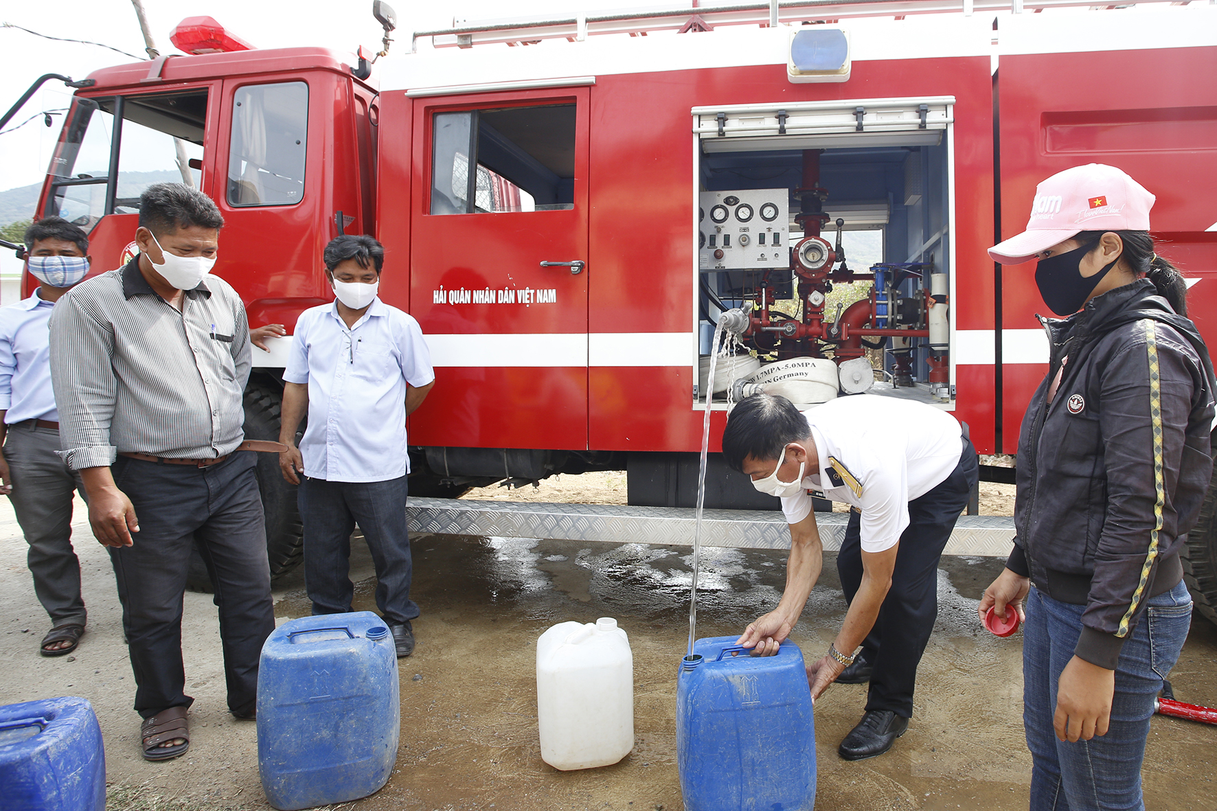 Nhân dân thôn Suối Rua nhận nước ngọt do Kho 858 cung cấp