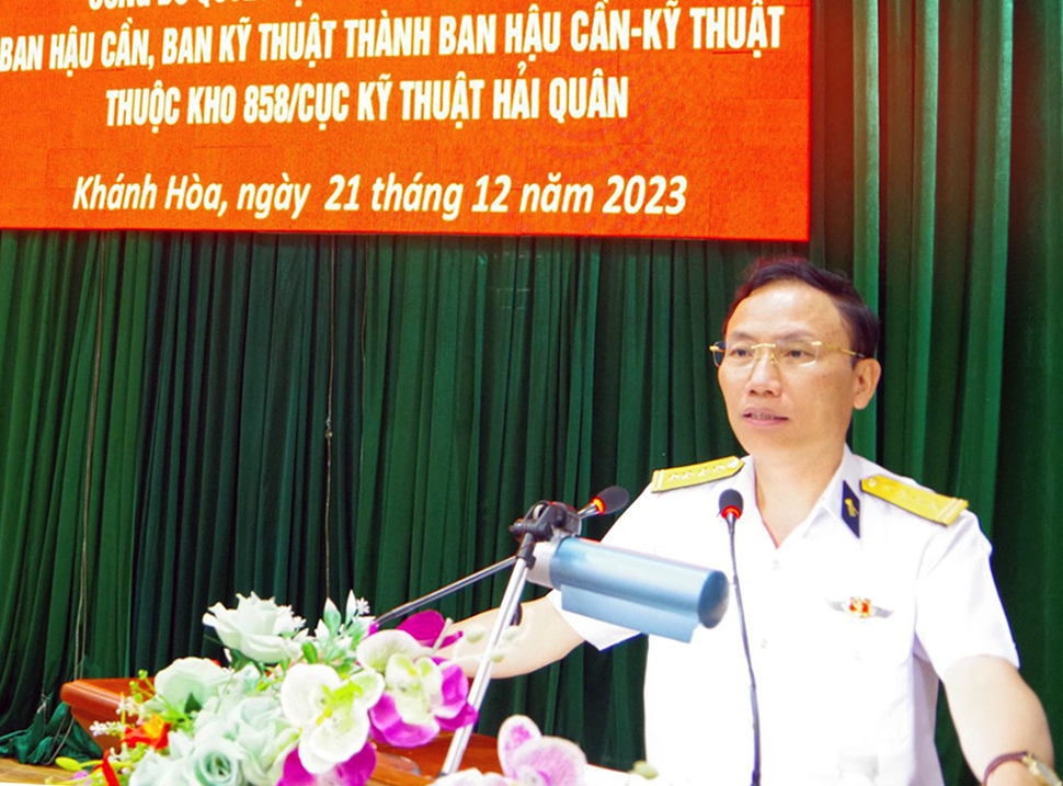 Chiều 21/12, tại TP. Cam Ranh, tỉnh Khánh Hòa, Kho 858, Cục Kỹ thuật Hải quân tổ chức Hội nghị công bố quyết định sáp nhập và tổ chức lại Ban Hậu cần, Ban Kỹ thuật thành Ban Hậu cần-Kỹ thuật. Đại tá Ngô Văn Thành, Bí thư Đảng ủy, Chính ủy Cục Kỹ thuật dự.