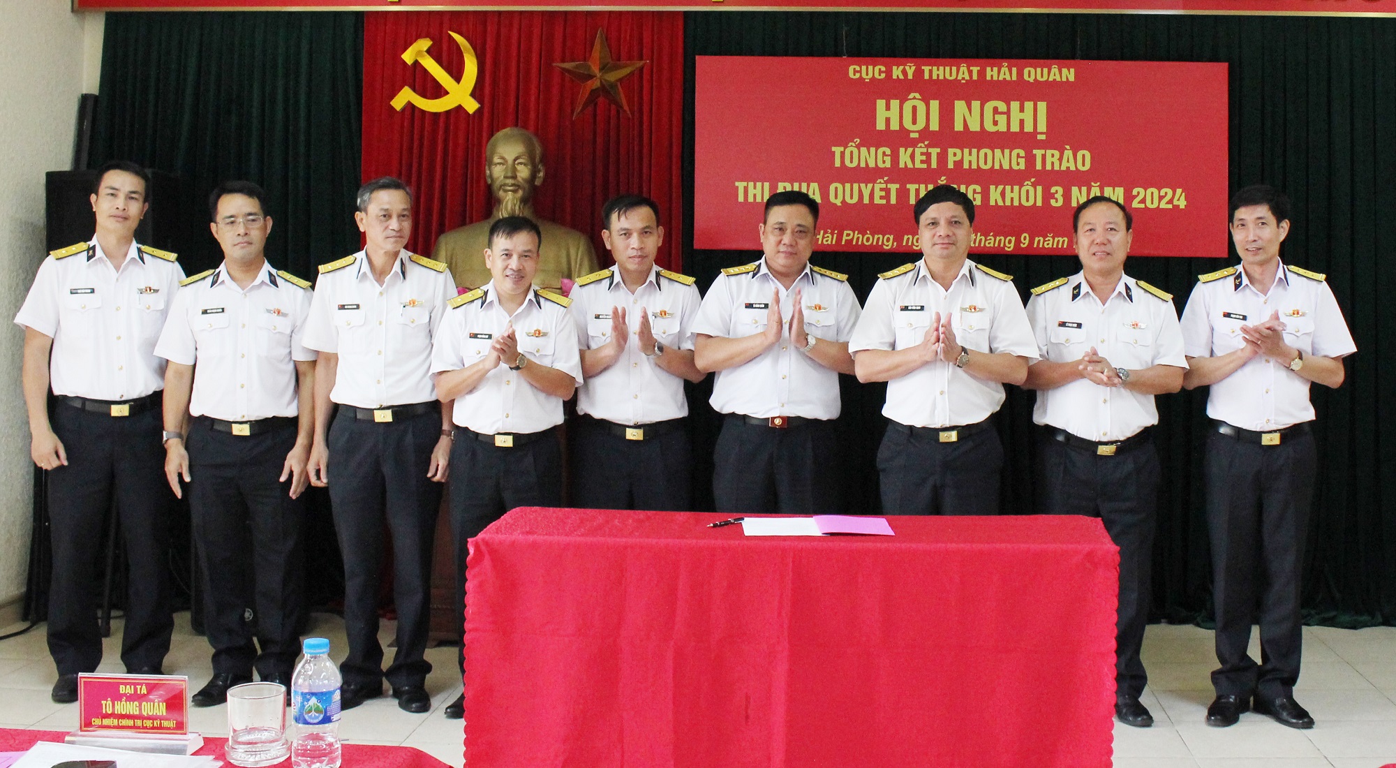 Chiều 26/9, tại Hải Phòng, khối thi đua 3 Cục Kỹ thuật Hải quân tổ chức Hội nghị tổng kết phong trào thi đua quyết thắng năm 2024 và triển khai phương hướng, nhiệm vụ năm 2025. Dự và chỉ đạo có Đại tá Tô Hồng Quân, Chủ nhiệm Chính trị Cục Kỹ thuật.