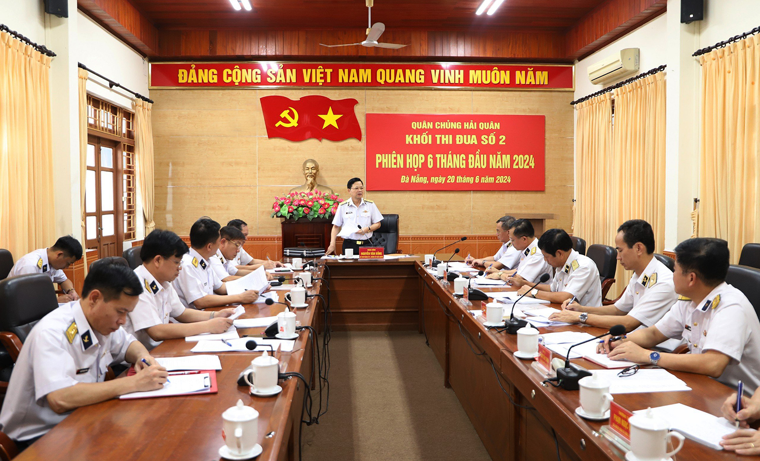 Chiều 20/6, tại Vùng 3 (TP. Đà Nẵng) Khối thi đua số 2 của Quân chủng Hải quân tổ chức phiên họp 6 tháng đầu năm 2024. Trung tướng Nguyễn Văn Bổng, Chính ủy Hải quân dự và chỉ đạo. Dự phiên họp có Chuẩn Đô đốc Phạm Văn Luyện, Phó Chủ nhiệm Chính trị Hải quân; chính ủy và trưởng ban tuyên huấn các vùng.