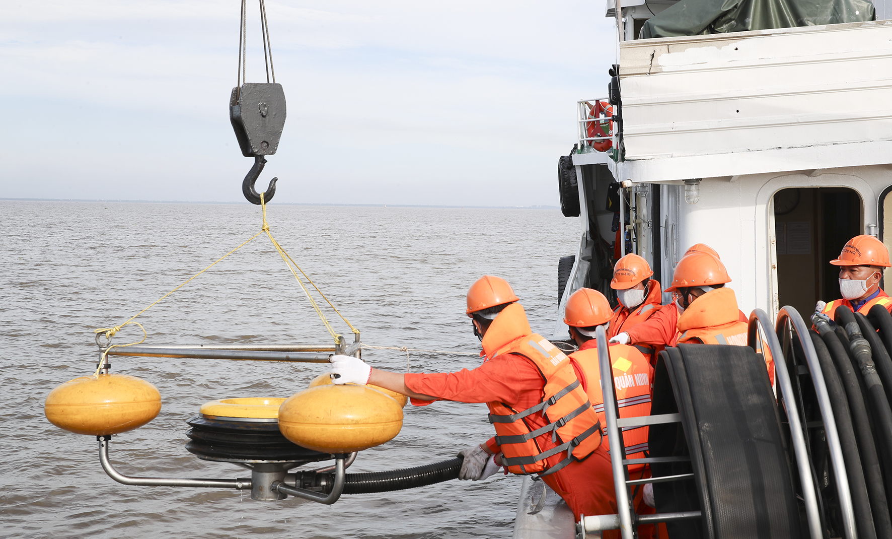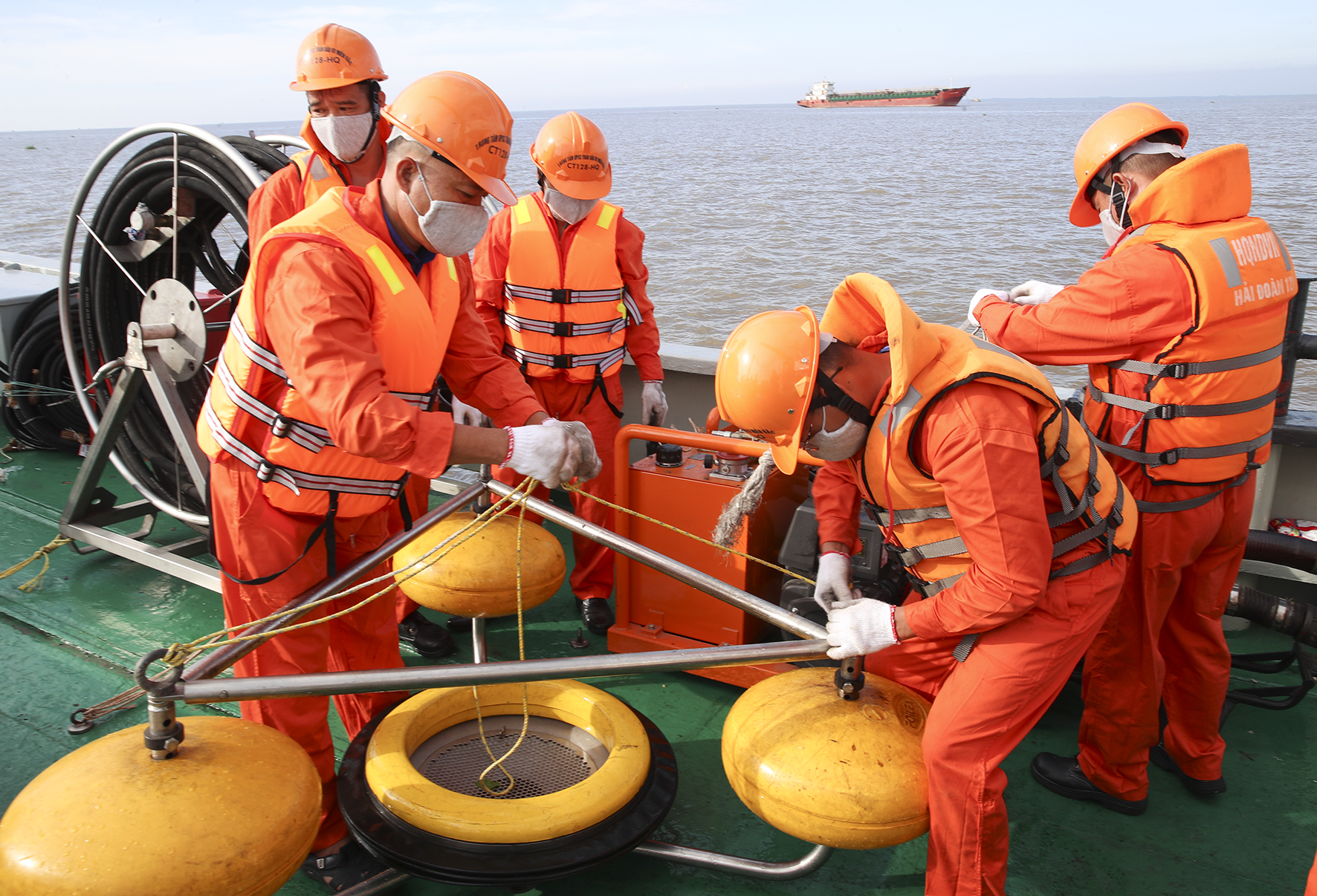 Được lệnh của trên, cán bộ, nhân viên Trung tâm Ứng phó sự cố tràn dầu miền Bắc điều động tàu về đơn vị bảo đảm an toàn mọi mặt và thực hiện nhiệm vụ tiếp theo.