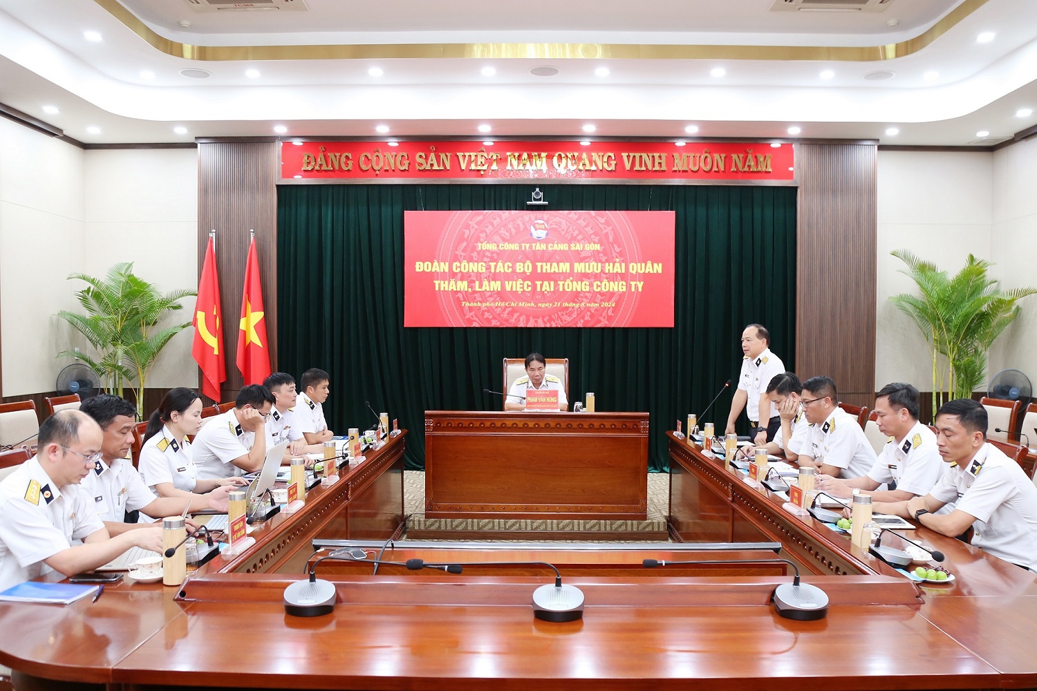 Ngày 21/8, tại TP. Hồ Chí Minh và Bà Rịa - Vũng Tàu, đoàn công tác của Bộ Tham mưu Hải quân do Chuẩn Đô đốc Phạm Văn Hùng, Phó Tham mưu trưởng Hải quân làm trưởng đoàn đã đến kiểm tra việc chấp hành quy định pháp luật về bảo vệ môi trường tại cảng Tân cảng Cái Mép thuộc Tổng công ty Tân cảng Sài Gòn. Đại tá Nguyễn Thanh Trúc, Phó Tổng giám đốc chủ trì đón đoàn.