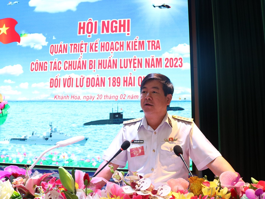 Ngày 20/2, tại TP. Cam Ranh, tỉnh Khánh Hòa, đoàn kiểm tra của Quân chủng Hải quân đã kiểm tra công tác chuẩn bị huấn luyện năm 2023 tại Lữ đoàn tàu ngầm 189. Đoàn do Đại tá Nguyễn Quốc Doanh, Phó Tham mưu trưởng Hải quân làm trưởng đoàn.