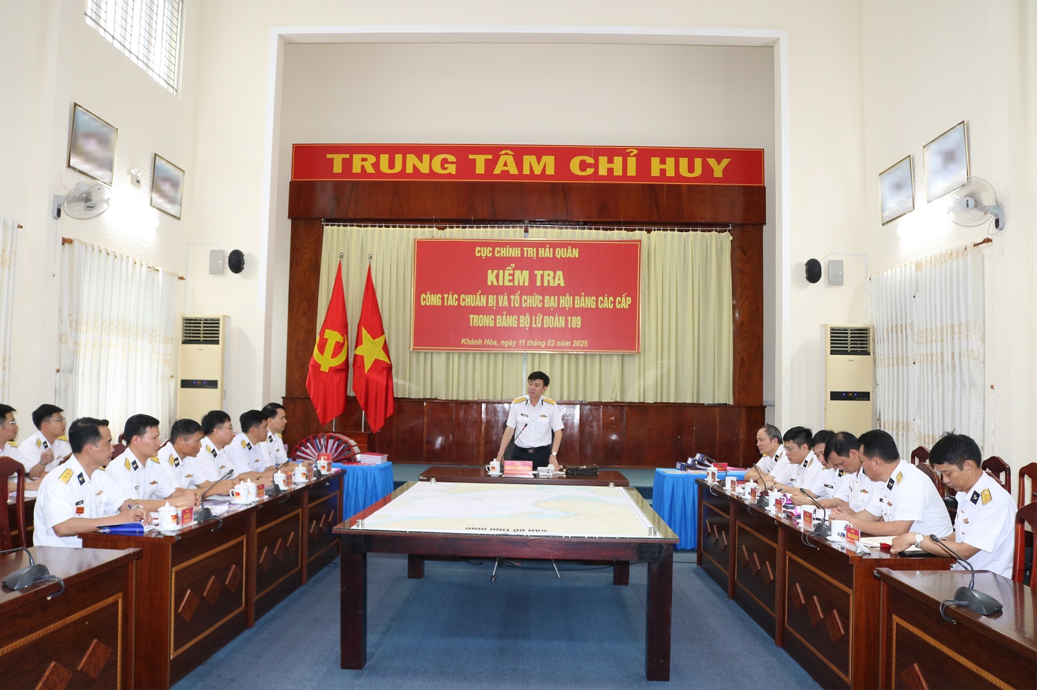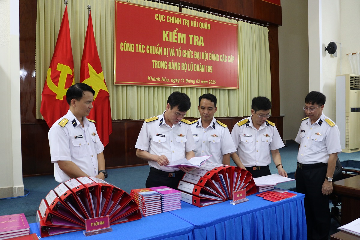 Chiều 11/2, tại TP. Cam Ranh, tỉnh Khánh Hòa, đoàn công tác của Cục Chính trị Hải quân do Đại tá Nguyễn Công Thắng, Phó Chủ nhiệm Chính trị Hải quân làm trưởng đoàn đã kiểm tra công tác chuẩn bị tổ chức đại hội đảng các cấp và một số nội dung hoạt động CTĐ, CTCT tại Lữ đoàn 189.