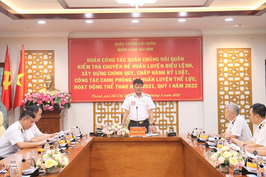 Sáng 25/5, tại TP. Hồ Chí Minh, đoàn công tác của Quân chủng Hải quân do Chuẩn Đô đốc Trần Ngọc Quyết, Phó Tham mưu trưởng Hải quân làm trưởng đoàn đã tiến hành kiểm tra chuyên đề huấn luyện điều lệnh, xây dựng nền nếp chính quy, chấp hành kỷ luật, công tác canh phòng và huấn luyện thể lực, hoạt động thể thao của Quân cảng Sài Gòn.
