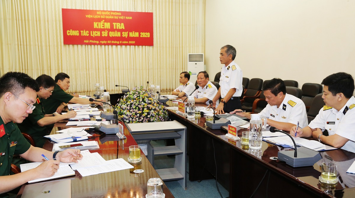 Sau khi nghe đại diện Quân chủng Hải quân và Bộ Tư lệnh Vùng 1 Hải quân báo cáo kết quả thực hiện công tác lịch sử quân sự từ tháng 1-2017 đến 5-2020, đoàn tiến hành kiểm tra hệ thống văn bản, hồ sơ, kế hoạch, sổ sách lưu trữ, các sản phẩm, công trình lịch sử quân sự của Quân chủng Hải quân.