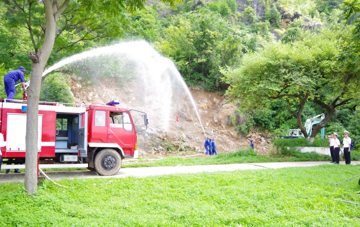 Đoàn cũng đã kiểm tra những điểm có nguy cơ mất an toàn trong bão, lũ, sạt lở đất khu vực đóng quân và phương án ứng phó khi có sự cố xảy ra; kiểm tra xử trí tình huống theo phương án cháy nổ và khả năng cơ động lực lượng, phương tiện chữa cháy...