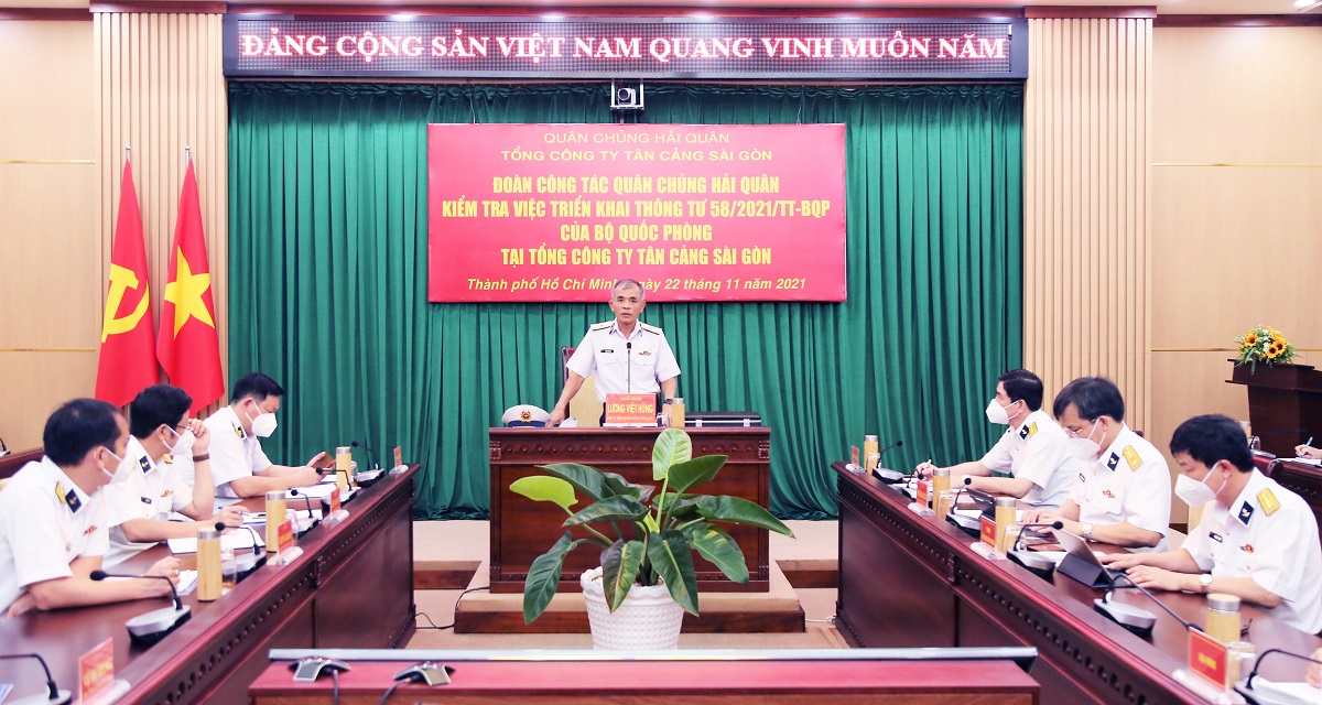 Ngày 22 và 23/11, đoàn công tác của Quân chủng Hải quân do Chuẩn Đô đốc Lương Việt Hùng, Phó Tư lệnh Hải quân làm trưởng đoàn đã đến kiểm tra tình hình thực hiện Nghị quyết 132/2020/QH14, Nghị định 26/2021/NĐ-CP và Thông tư 58/2021/TT-BQP về thí điểm một số chính sách tháo gỡ vướng mắc, tồn đọng trong quản lý, sử dụng đất quốc phòng tham gia hoạt động lao động sản xuất, xây dựng kinh tế tại Tổng công ty (TCT) Tân cảng Sài Gòn.