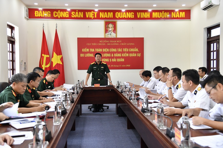 Ngày 15 và 16/11, tại TP. Phú Quốc, tỉnh Kiên Giang, đoàn công tác Cục Tiêu chuẩn – Đo lường – Chất lượng, Bộ Tổng Tham mưu do Đại tá Nguyễn Hoàng Ngọc Dũng, Phó Cục trưởng làm trưởng đoàn đã đến kiểm tra công tác tiêu chuẩn, đo lường, chất lượng và đăng kiểm quân sự đối với Vùng 5 Hải quân.