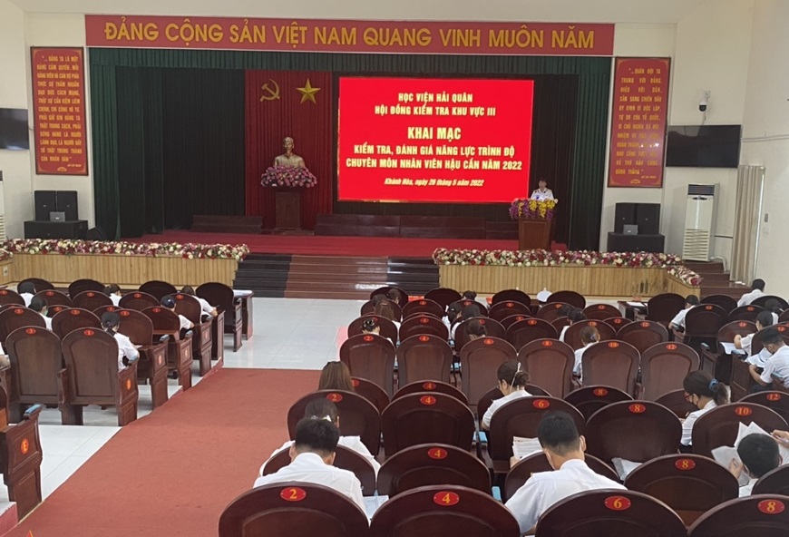 Sáng 26/5, tại Học viện Hải quân, Hội đồng kiểm tra khu vực III của Quân chủng Hải quân kiểm tra đánh giá năng lực, trình độ chuyên môn nhân viên hậu cần các chuyên ngành quân nhu, xăng dầu thuộc Cụm lực lượng Hải quân 4 đóng quân trên địa bàn tỉnh Phú Yên, Khánh Hòa.
