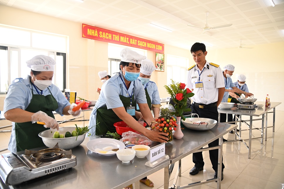 Thực hành chế biến món ăn của thí sinh ngành quân nhu