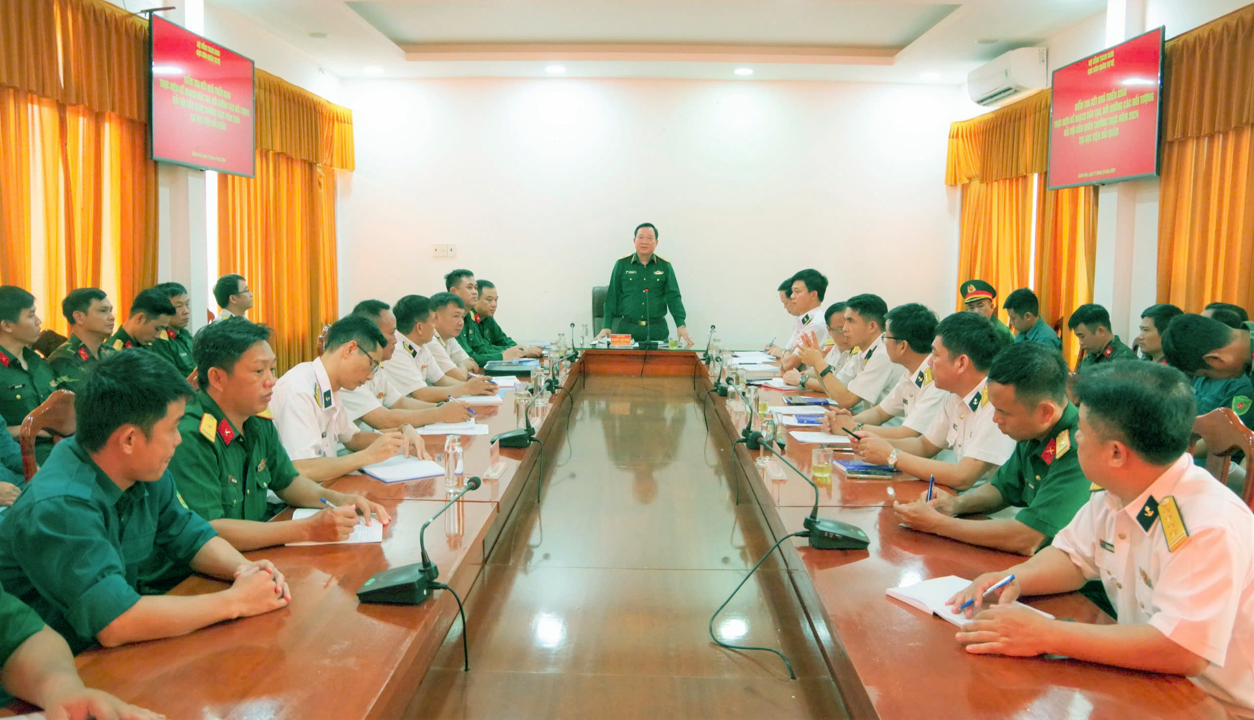 Đồng chí Phó Cục trưởng Cục Dân quân Tự vệ yêu cầu Học viện Hải quân phối hợp với các địa phương tiếp tục tổ chức huấn luyện tại hải đội của các tỉnh theo kế hoạch.