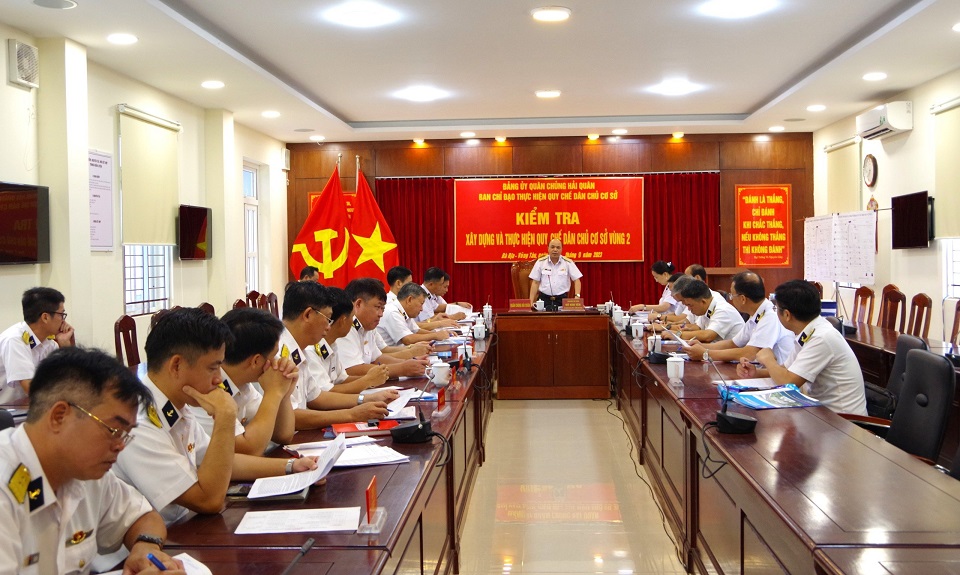 Sáng 26/9, tại TP. Vũng Tàu, tỉnh Bà Rịa – Vũng Tàu, đoàn kiểm tra thực hiện Quy chế dân chủ cơ sở (QCDCCS) trong Quân chủng Hải quân do Chuẩn Đô đốc Đỗ Văn Yên, Phó Chính ủy Hải quân làm trưởng đoàn, đã đến kiểm tra Vùng 2.