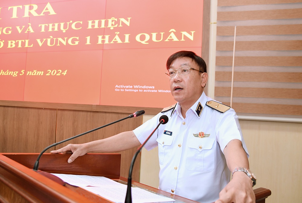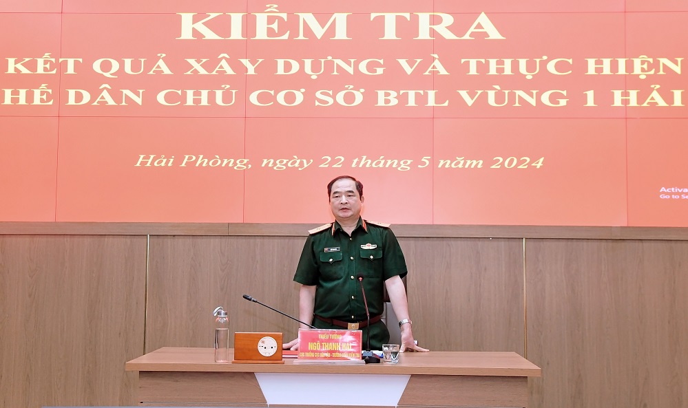 Phát biểu tại buổi kiểm tra, Thiếu tướng Ngô Thanh Hải biểu dương Đảng ủy Vùng 1 Hải quân đã lãnh đạo, chỉ đạo, triển khai tổ chức thực hiện QCDCCS nghiêm túc, chặt chẽ, đúng quy định và đạt chất lượng, hiệu quả tốt.