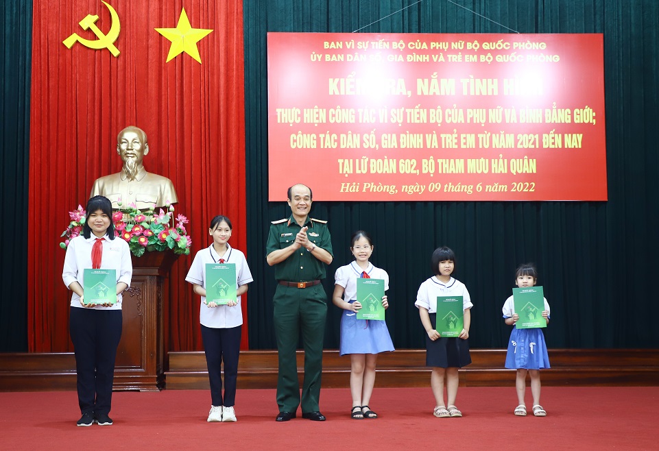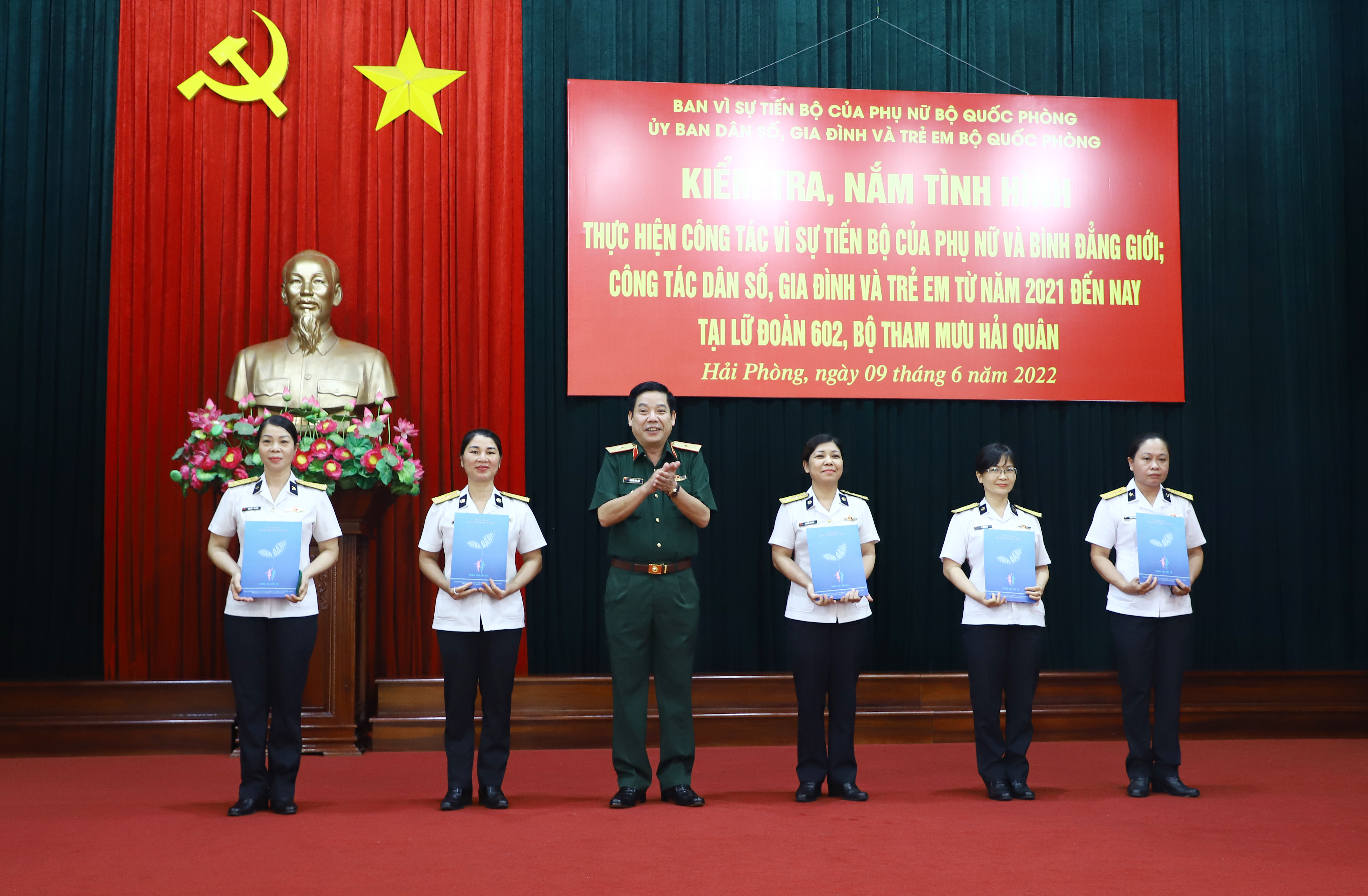 Dịp này, đoàn công tác đã thăm nơi làm việc của cán bộ, hội viên phụ nữ Lữ đoàn 602, Bộ Tham mưu Hải quân.UBVSTBCPN, UBDSGĐ&TE Bộ Quốc phòng đã tặng quà hội viên phụ nữ có hoàn cảnh khó khăn, các cháu con quân nhân vượt khó học giỏi.