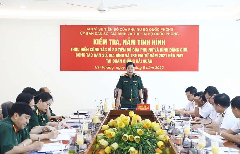 Sáng 9/6, tại Hải Phòng, Ban Vì sự tiến bộ của Phụ nữ (VSTBCPN) Bộ Quốc phòng, Ủy ban Dân số, Gia đình và Trẻ em (UBDSGĐ&TE) Bộ Quốc phòng kiểm tra, nắm tình hình thực hiện công tác Vì sự tiến bộ của phụ nữ và bình đẳng giới; công tác dân số, gia đình và trẻ em từ năm 2021 đến nay tại Quân chủng Hải quân.