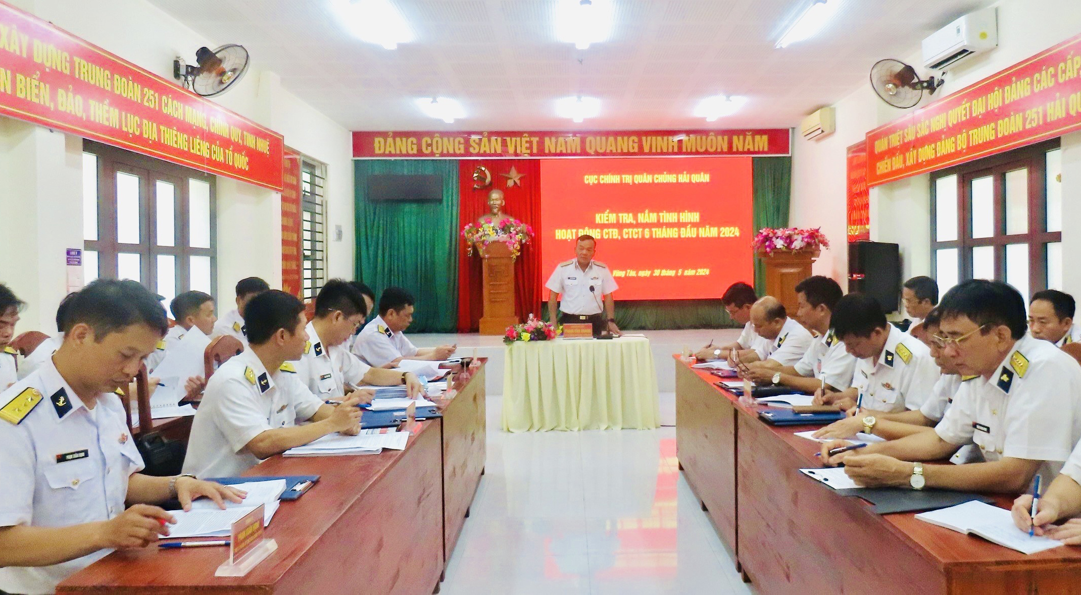 Sáng 30/5, tại TP. Vũng Tàu, đoàn công tác của Quân chủng Hải quân do Chuẩn Đô đốc Phạm Văn Quang, Phó Chủ nhiệm Chính trị Hải quân làm trưởng đoàn đã đến kiểm tra, nắm tình hình hoạt động CTĐ, CTCT 6 tháng đầu năm 2024 của Trung đoàn 251, Vùng 2 Hải quân.