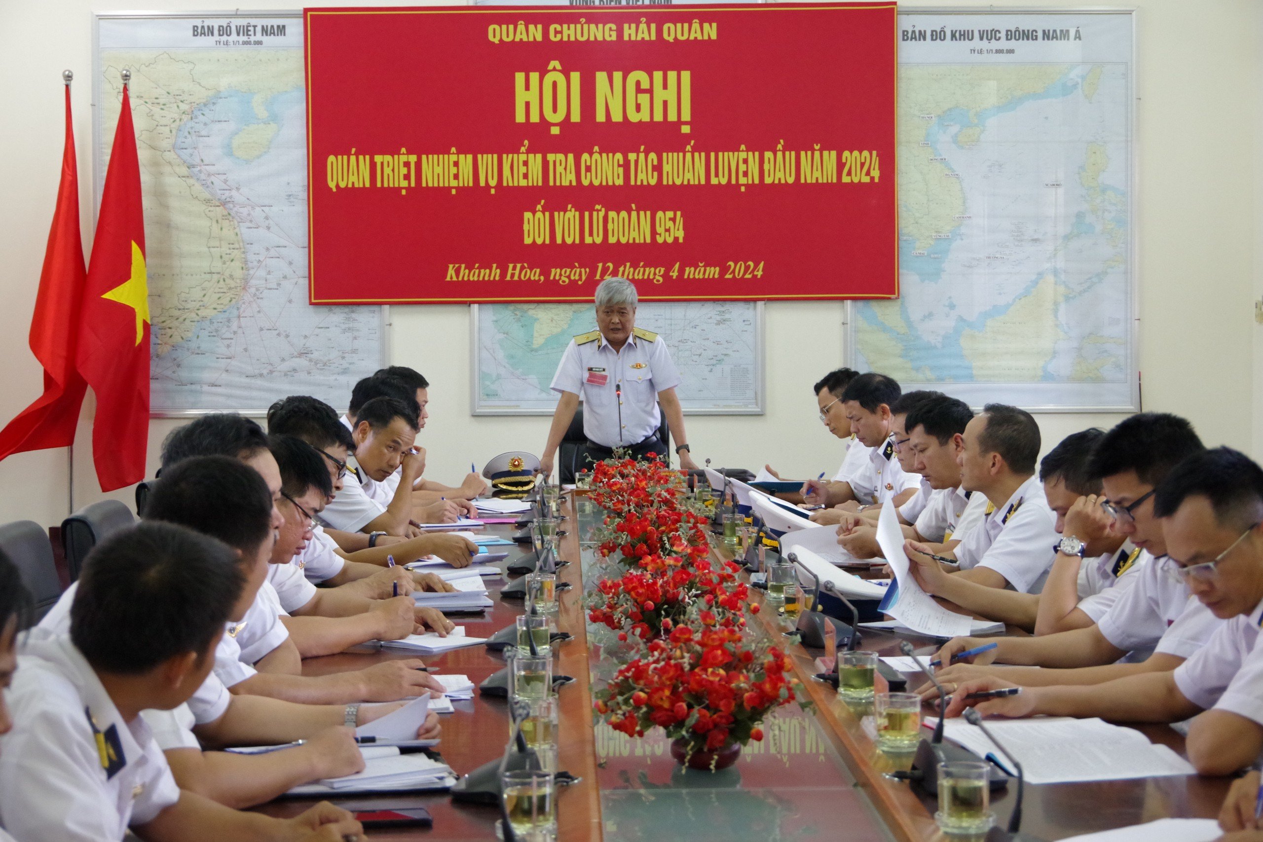 Chiều 12/4, tại TP. Cam Ranh, tỉnh Khánh Hòa, đoàn công tác của Quân chủng do Chuẩn Đô đốc Trần Ngọc Quyết, Phó Tham mưu trưởng Hải quân làm trưởng đoàn đã kiểm tra kết quả tháng đầu huấn luyện năm 2024 tại Lữ đoàn 954.