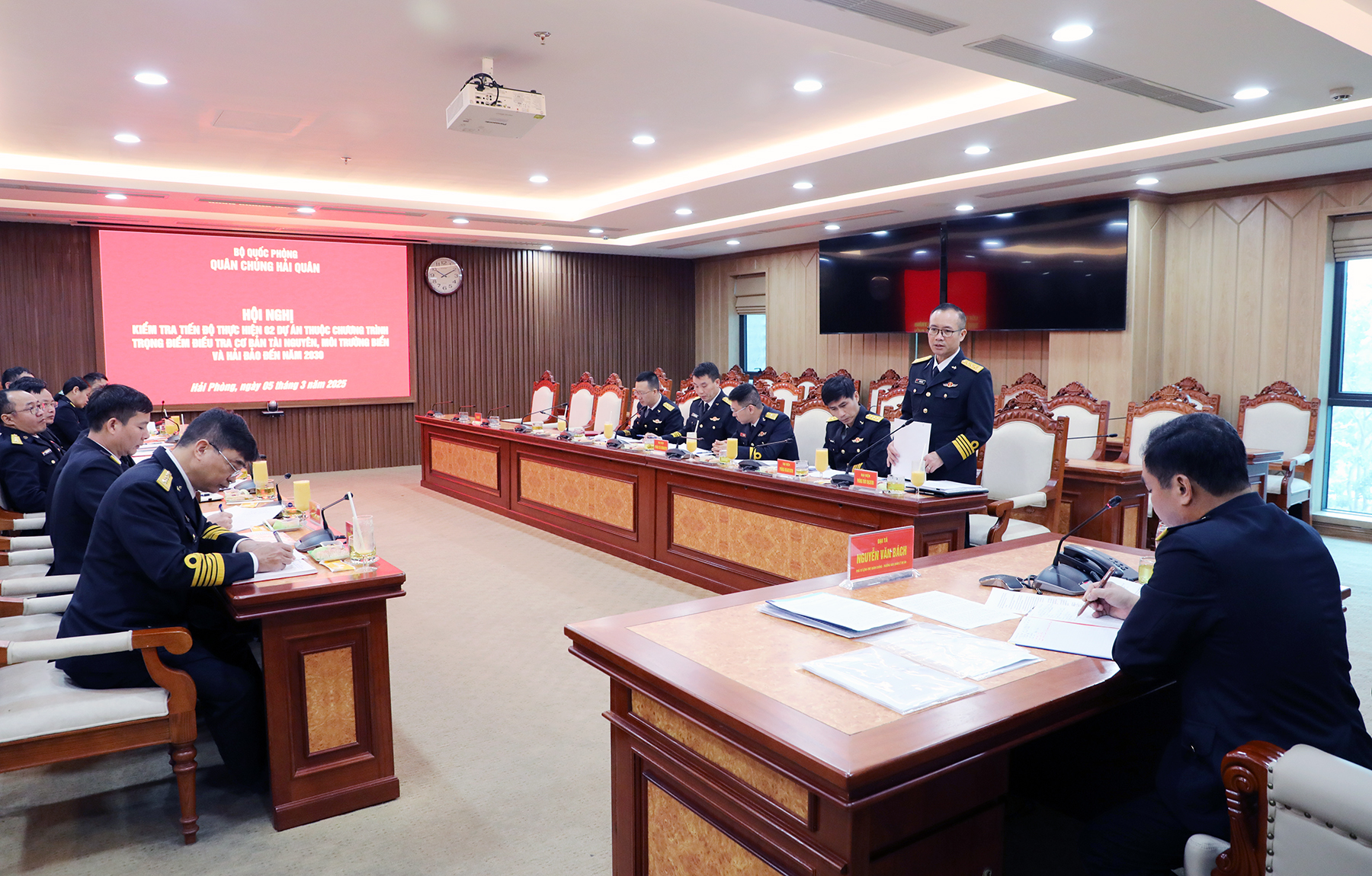 Sáng 5/3, tại Hải Phòng, Quân chủng Hải quân tổ chức Hội nghị kiểm tra tiến độ thực hiện 2 dự án thuộc Chương trình trọng điểm điều tra cơ bản tài nguyên, môi trường biển và hải đảo đến năm 2030. Đại tá Nguyễn Văn Bách, Phó Tư lệnh, Tham mưu trưởng Hải quân chủ trì.