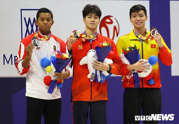 Trần Hưng Nguyên (đứng giữa) nhận Huy chương Vàng lần 2 tại SEA Games 30. Ảnh: Hà Thành