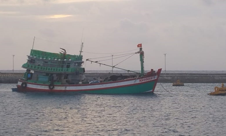 Tàu cá KH 99668 TS neo đậu tại âu tàu đảo Trường Sa
