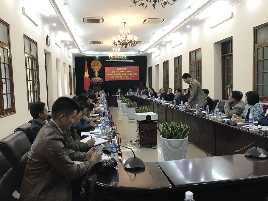 Sáng 28-11, Thường trực Hội đồng nhân dân thành phố Hải Phòng tổ chức họp báo thông báo về Kỳ họp thứ 6 HĐND thành phố, Khóa XV (nhiệm kỳ 2016-2021). Kỳ họp sẽ diễn ra trong 3 ngày từ 6 đến 8-12-2017. Đồng chí Nguyễn Đình Bích, Phó Chủ tịch Thường trực Hội đồng nhân dân thành phố chủ trì buổi họp báo.